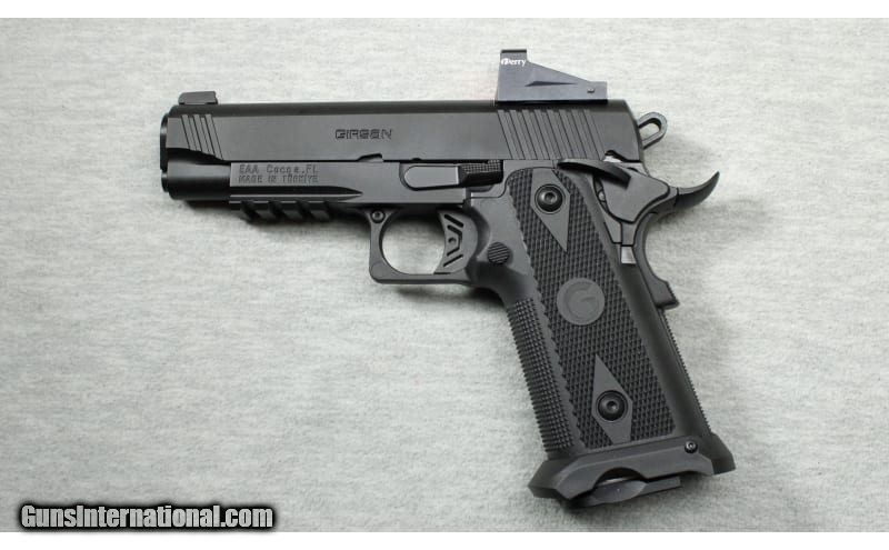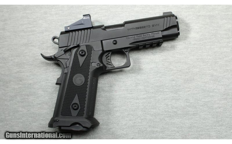 Description: Excellent condition, light wear and handling marks, comes with 2 mags and factory hard case. 1911 style double stack semi auto pistol, 4 1/4" barrel, factory black finish, factory red dot sight installed. Single action trigger, lightweight hammer, extended ambi safety levers and beavertail grip safety. Accessory rail for light or laser, magwell and nicely checkered grip surfaces. 9mm Luger SOLD Chambers: Semi auto Metal Condition: Excellent Bore Condition: Bright Barrels: 4 1/4' Triggers: Single action Fore End: Rail for accessory mounting Butt Pad: Checkered polymer grip Sights: Red dot sight installed Item Location: La Vista, NE |