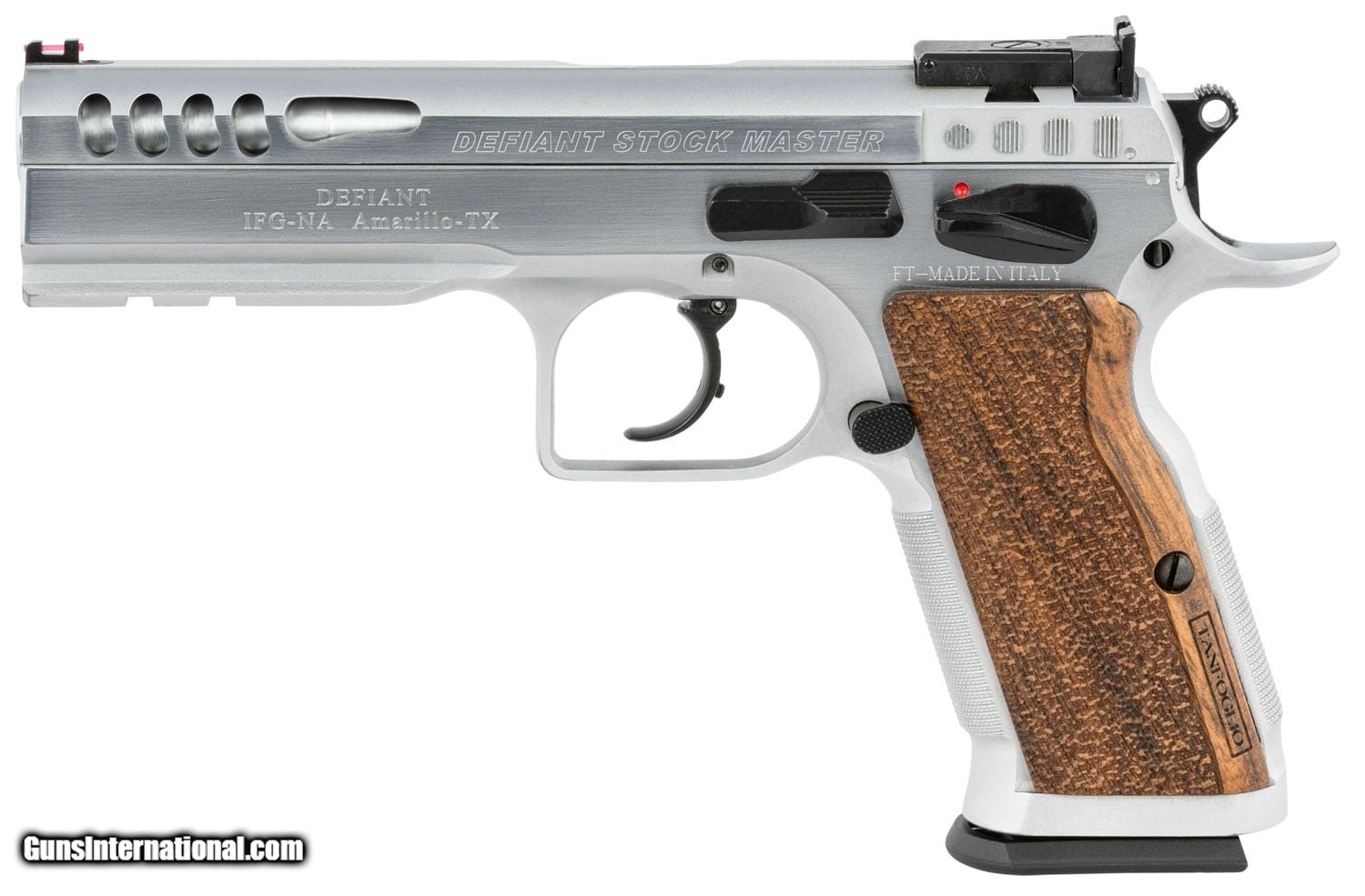 Description: Guns Listing ID: 673250 The STOCK Master brings together the ultimate set of features for today‚‚s Production Division Shooter. It takes the frame of a STOCK III and combines it with the highly desirable features found on the STOCK II. Full Conical Bull Barrels with Semi-Polygonal rifling come standard and are lengthened to match the length of the STOCK III frame. The Defiant STOCK Master uses a lightened slide like the one found on the Limited Custom to quicken cycle time and lockup. This model ships with 2 magazines, ambidextrous safeties, hard chromed finishing, fiber optic front sight, and the fully adjustable rear SuperSight SOLD Manufacturer: IFG Model: STOCK MASTER Caliber Info: 10MM Condition: new Barrels: 4.75 BARREL |