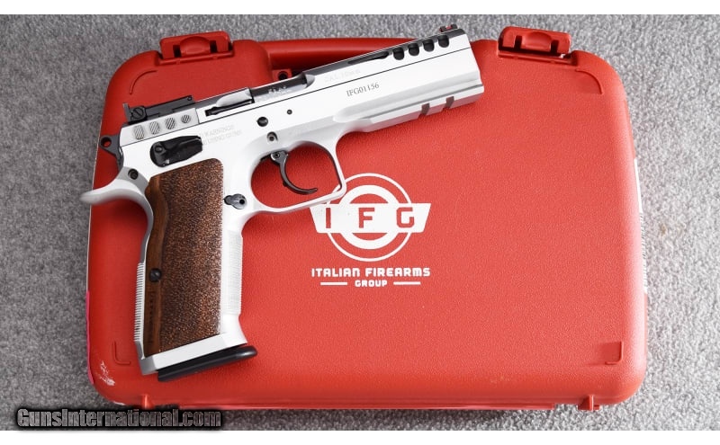 Description: The Tanfoglio Defiant Stock Master was manufactured in Italy and imported by the IFG (Italian Firearms Group in Amarillo TX) starting in 2020. This gun shows very little use and remains in excellent overall condition. Gun is built on a large steel frame with ported barrel. Gun has ambidextrous safety. Complete with original plastic case, manual, two magazines (2 Total) and Tanfoglio cleaning kit. Very nice gun! 10mm Auto SOLD Metal Condition: Excellent Wood Condition: Excellent Bore Condition: Excellent Barrels: 4 3/4" Ported Triggers: Factory Butt Pad: Textured Wooden Grips Weight: 42 oz Sights: Red Fiber Optic Front - Adjustable Square Notch Rear Item Location: Wheeling |