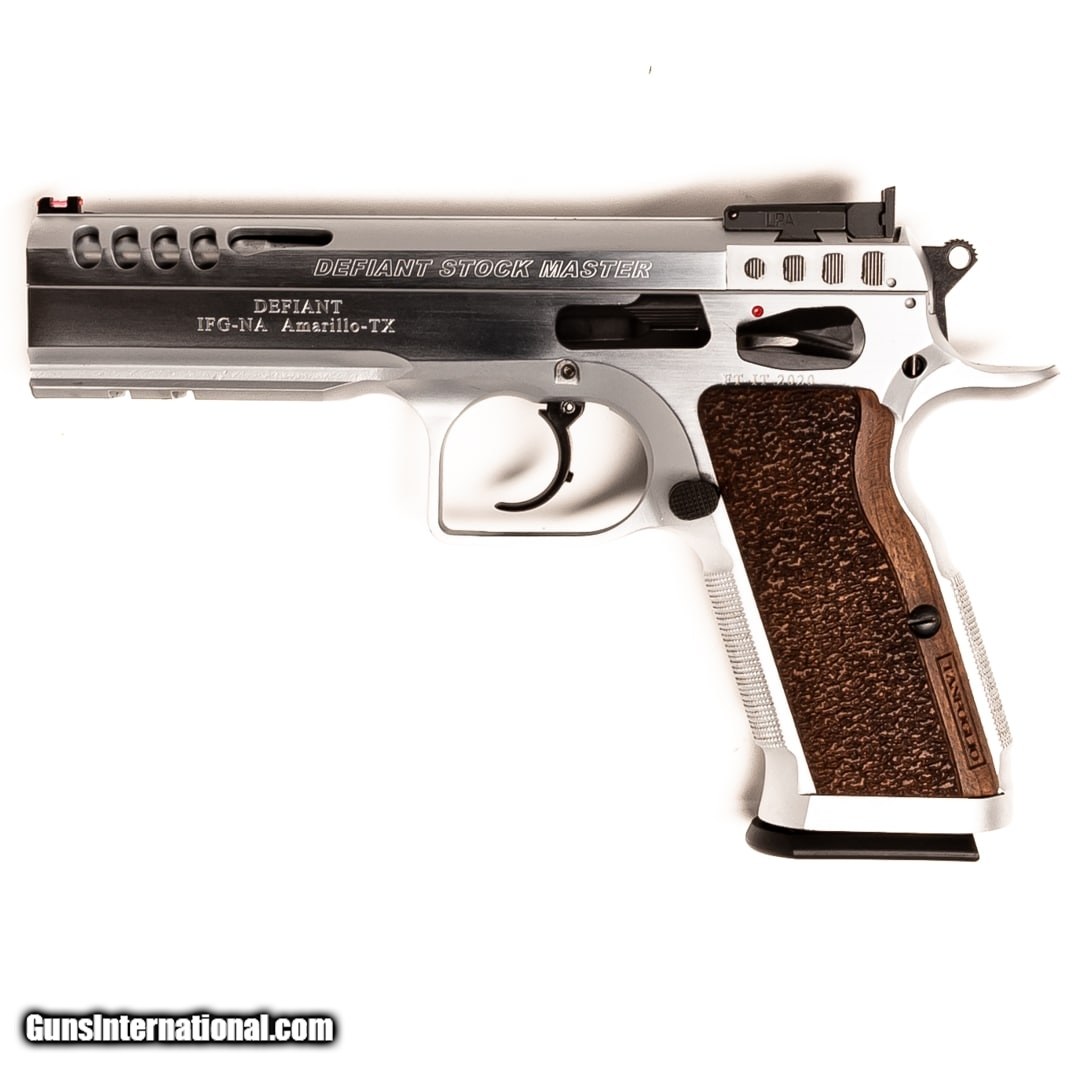 Description: Guns Listing ID: 793110 Taking its roots in John Browning’s design of the Hi-Power, the Tanfoglio Defiant Stock Master has been polished and customized to bring a smooth and quality shooting experience to the user. The pistol is a double-action/single-action pistol that was designed with the I.P.S.C. specifications in mind. This pistol s a quality option at a reasonable price point. This handgun features two 17-round magazines and the original case with the manual. Get the best bang for your buck when you get a Certified Used Firearm . When you see the Certified Used stamp on any of our firearms, you can be confident that you’re getting exactly what you want – a gun only in very good to excellent condition and held to the highest quality standard. All Certified Used Guns come with a ‘no questions asked’ return policy . PLUS, ALL CERTIFIED USED GUNS SHIP FREE! SOLD Manufacturer: TANFOGLIO Model: DEFIANT STOCK MASTER Caliber Info: 9MM LUGER (9X19 PARA) Condition: Used - Certified Barrels: 4.75 BARREL Finish: MATTE CHROME |