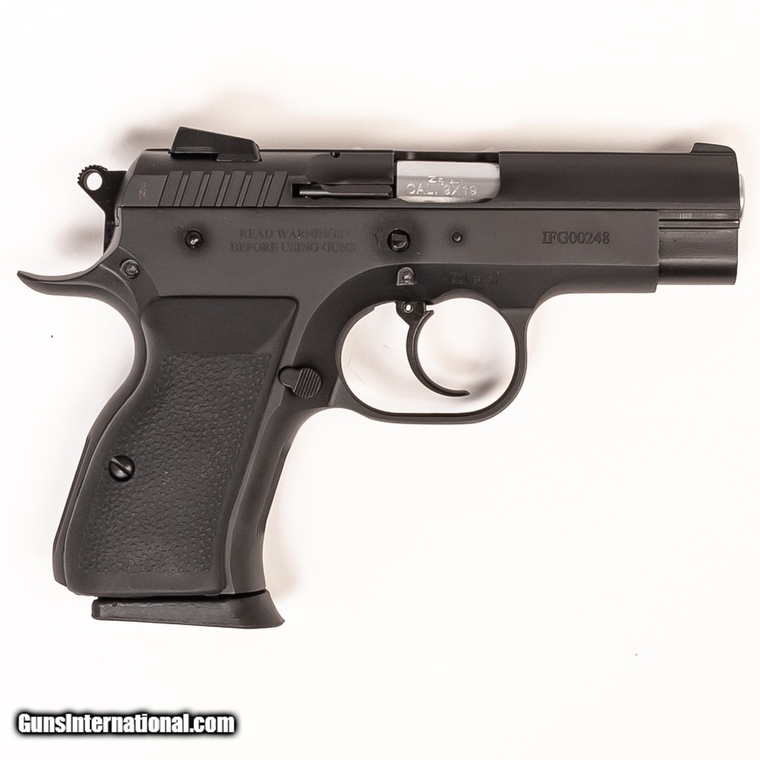 Description: Guns Listing ID: 475424 Taking its roots in John Browning‚‚s design of the Hi-Power, the Tanfoglio Defiant has been polished and customized to bring a smooth and quality shooting experience to the user. The pistol is a double-action/single-action pistol that was designed with the I.P.S.C. specifications in mind. This pistol s a quality option at a reasonable price point. This pistol comes with two 13-round magazines and the original box and manual SOLD Manufacturer: TANFOGLIO Model: DEFIANT Caliber Info: 9MM LUGER (9X19 PARA) Condition: Used - Certified Barrels: 3.75 BARREL Finish: BLACK |