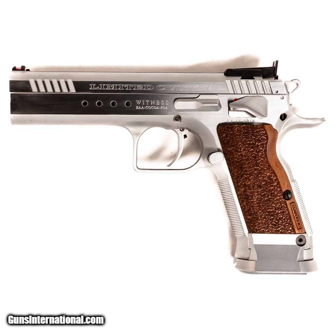 Description: Guns Listing ID: 742924 The Tanfoglio Witness Limited Custom is a premium quality competition handgun. Tanfoglio firearms have been used to win countless professional competitions and are known for their impeccable performance. This Witness Limited Custom is in excellent condition! Purchase includes the original lockable case, owner‚‚s manual, one 18-round magazine, and a cleaning kit. Get the best bang for your buck when you get a Certified Used Firearm . When you see the Certified Used stamp on any of our firearms, you can be confident that you’re getting exactly what you want – a gun only in very good to excellent condition and held to the highest quality standard. All Certified Used Guns come with a ‘no questions asked’ return policy . PLUS, ALL CERTIFIED USED GUNS SHIP FREE SOLD Manufacturer: TANFOGLIO Model: LIMITED CUSTOM WITNESS Caliber Info: .40 S&W Condition: Used - Certified Barrels: 4.7 BARREL Finish: STAINLESS |