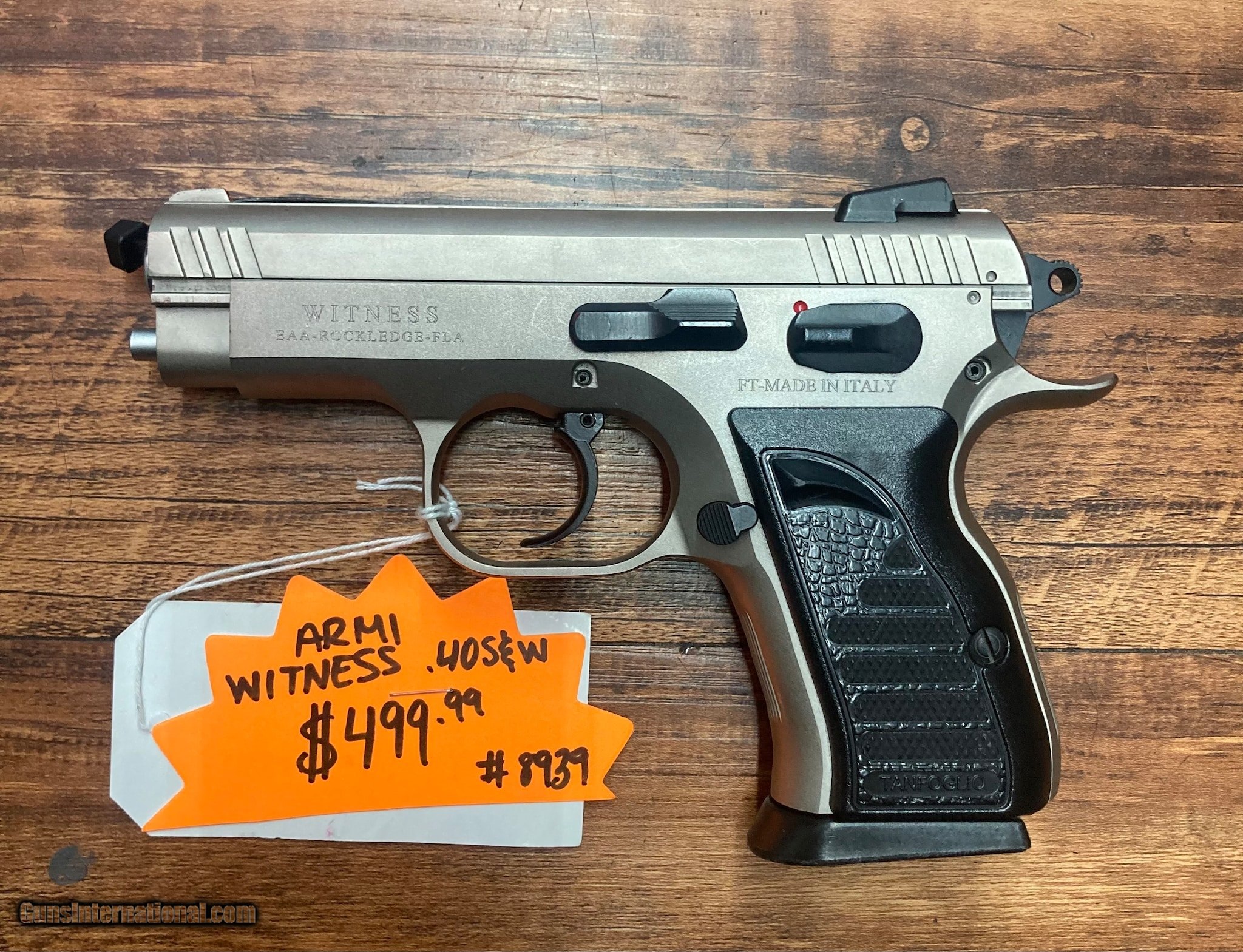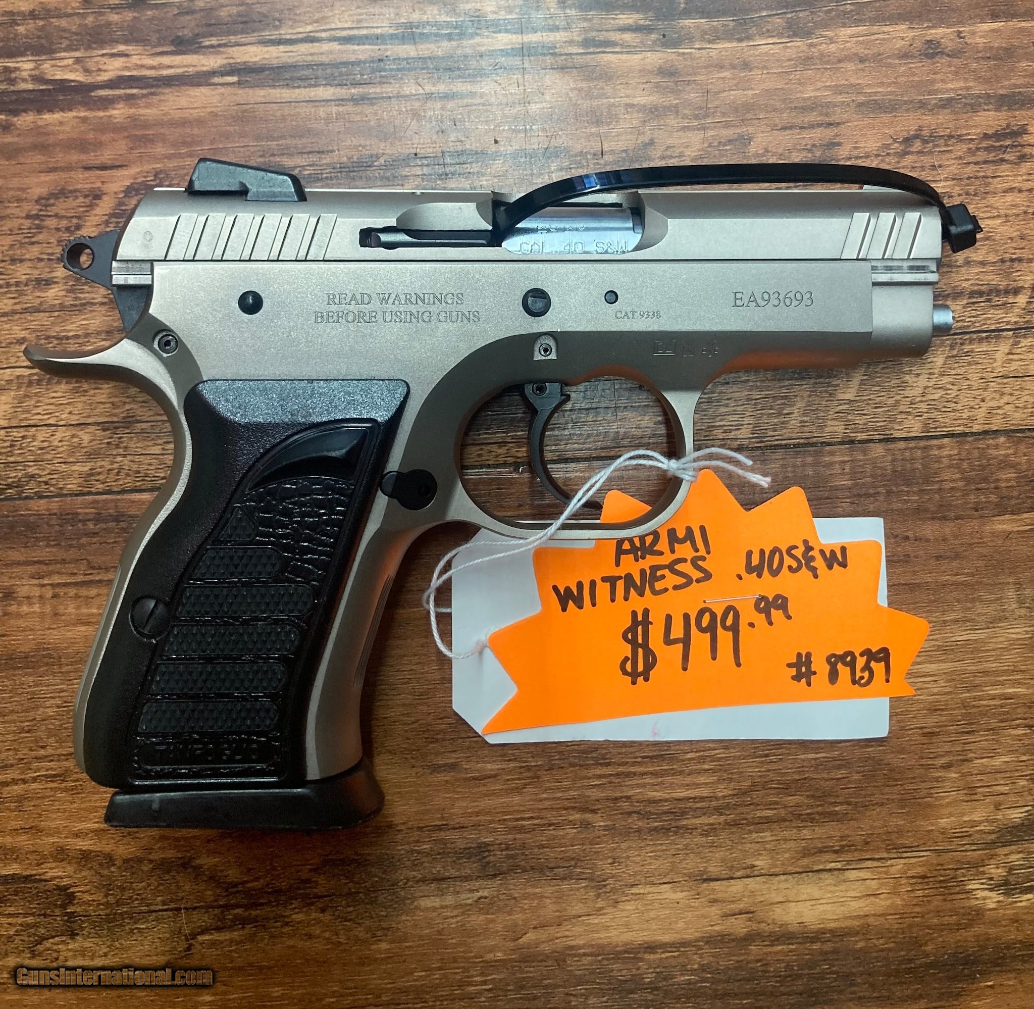 Description: Guns Listing ID: 1196230 VERY GOOD CONDITION WITNESS SOLD Manufacturer: TANFOGLIO Model: Witness Caliber Info: .40 S&W Condition: Used - Non-Certified Barrels: 3 BARREL Finish: TWO TONE BLACK AND STAINLESS |