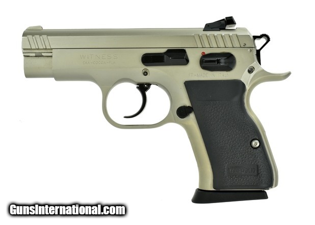 Description: Tanfoglio Witness .45 ACP caliber pistol. Compact stainless model with thumb safety, box and magazine. Excellent condition.