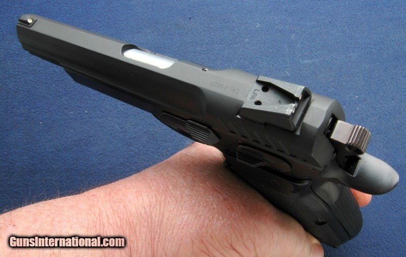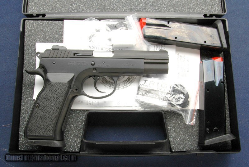 Description: As it says, very lightly used, complete package with numbered box, three factory magazines, cleaning brushes and all paperwork. Killer price, these are great handguns! $45 shipping to the lower 48, 3% surcharge for using a CC. If you pay with a personal check, you can expect us to hold the item for up to 10 days to ensure that the check clears. SOLD Handgun Caliber: .45 ACP (.45 Auto) |