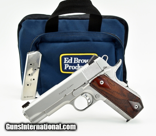 Description: Ed Brown Kobra Carry .45 ACP caliber pistol. 4” model with matte stainless finish, night sights, scaled serrations, rounded heel, carry bag and extra magazine in excellent condition.