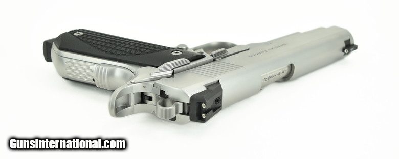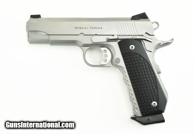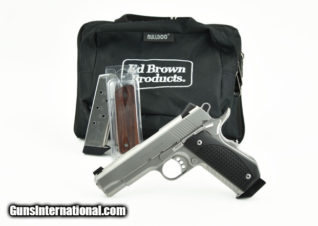 Ed Brown Special Forces .45 ACP caliber pistol. Special Forces model with 4” barrel, rounded heel, night sights, carry bag, and extra magazine.