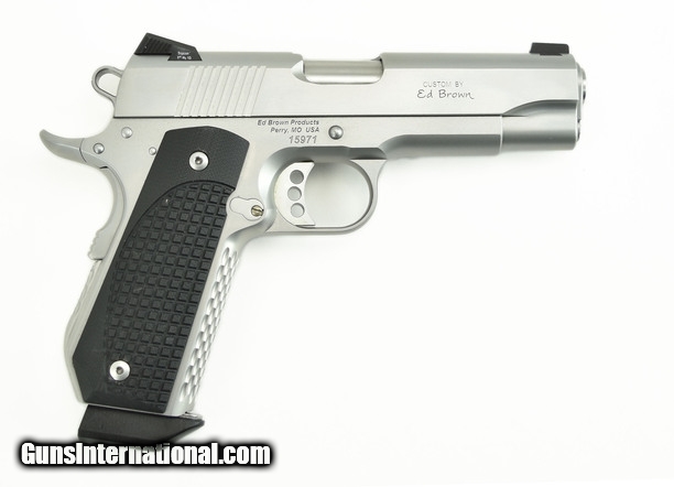 Description: Ed Brown Special Forces .45 ACP caliber pistol. Special Forces model with 4” barrel, rounded heel, night sights, carry bag, and extra magazine.