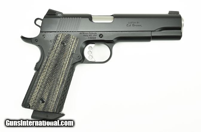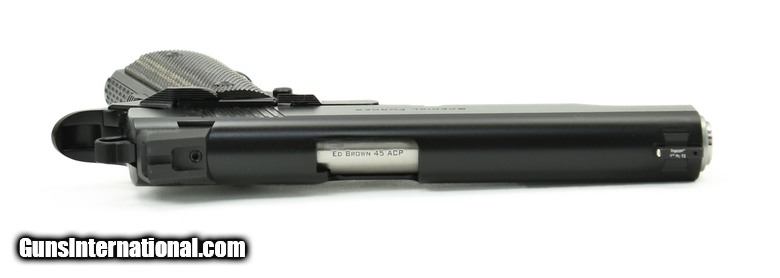 Description: Ed Brown Special Forces .45 ACP caliber pistol. 5” model with black coating and night sights. Excellent condition with bag and magazine. SOLD |