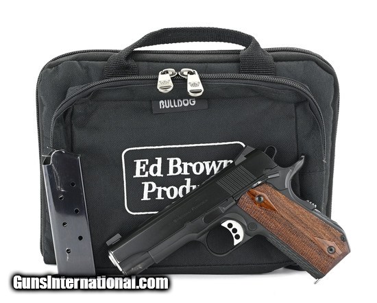 Description: " Ed Brown Special Forces .45 ACP caliber pistol. Commander size carry gun with black finish and bobtail grip. Very good condition with bag and extra magazine.