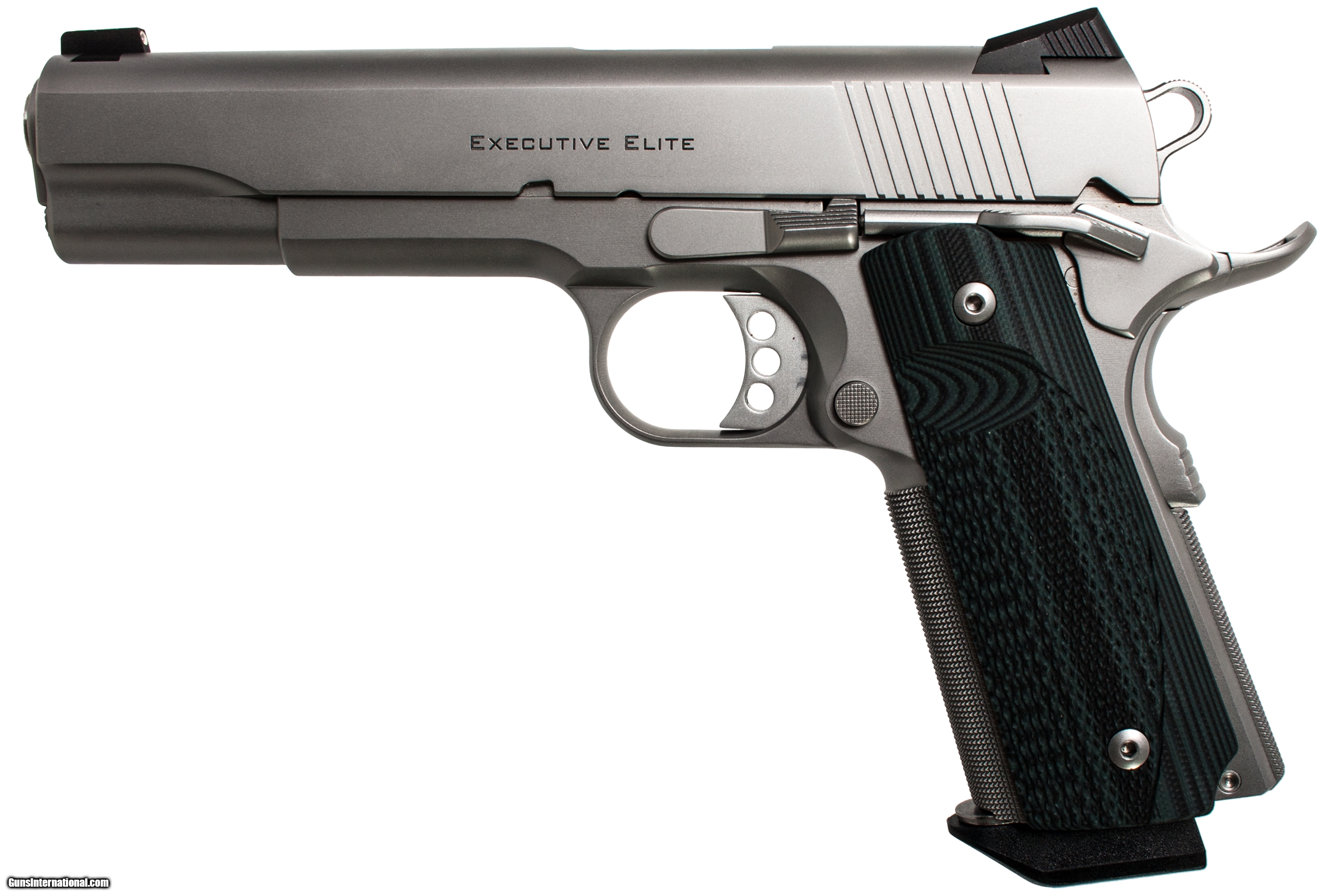 Ed Brown 1911 Executive Elite chambered in 45 acp with a 5 inch barrel Trijicon night sights Ed Brown pistol bag and 4 extra magazines. This gun is in excellent condition and is covered by Dury's Lifetime Warranty.