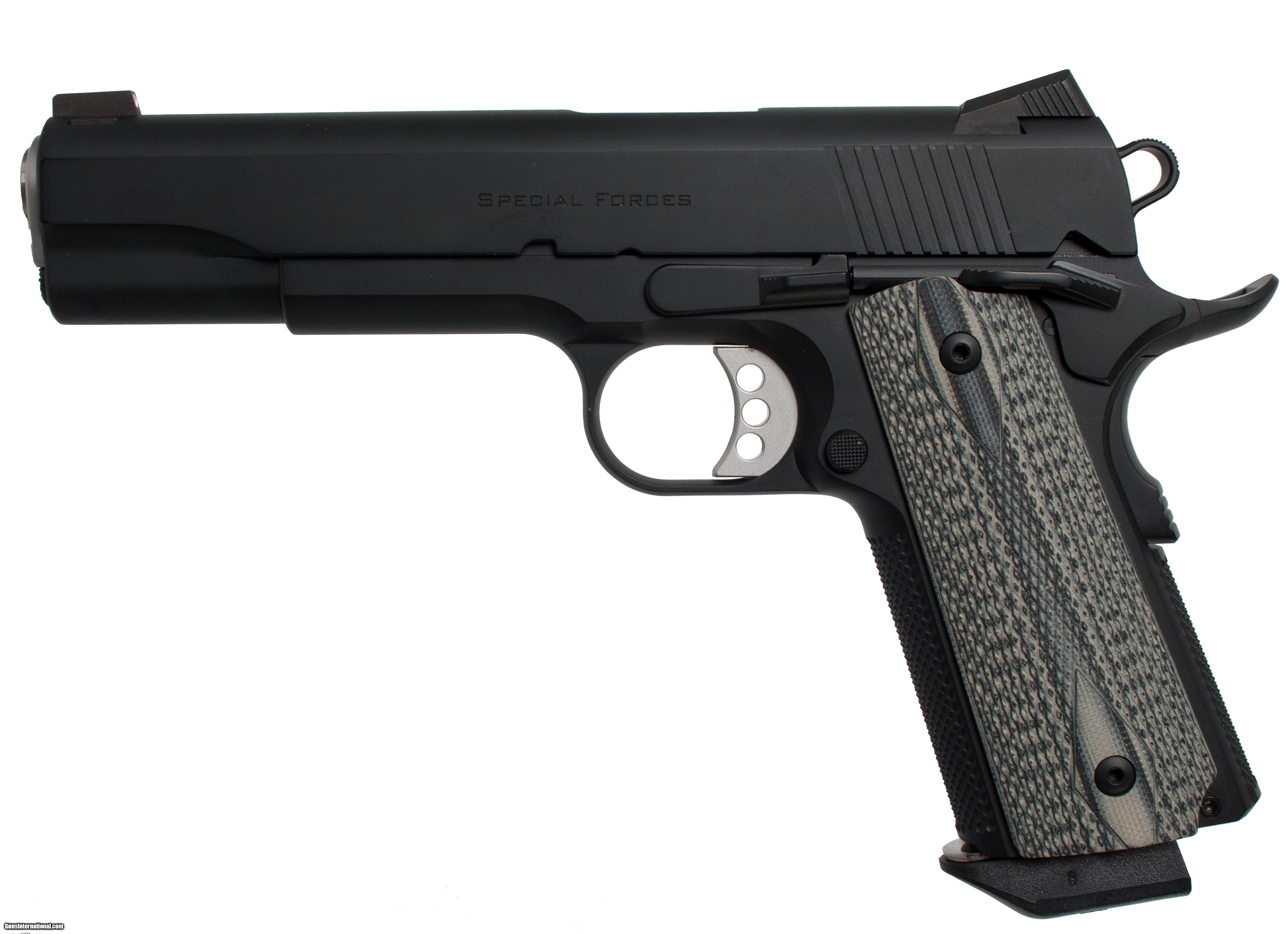 Ed Brown 1911 Special Forces chambered in 45 acp with a 5 inch barrel Trijicon night sights and a softcase. This gun is in excellent condition and is covered by Dury's Lifetime Warranty.