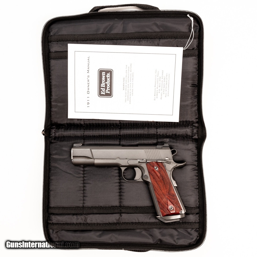 Description: Guns Listing ID: 914873 The Ed Brown 1911 Special Forces is a premium-quality 1911 chambered in 9mm. The original owner sent it back to Ed Brown for the following customizations. Gen 4 Stealth Grey Cerakote finish, Novak gold bead front sight, 10-8 rear sight, carry cuts, raised grooved slide rib, rear slide serrations, beveled frame / recessed slide stop, extended mag release, flush crowned barrel, solid long trigger, magwell with Chainlink III treatment and custom barrel bushing. Built in 2014. 1-10 round magazine, the original soft case, and a manual are included. Get the best bang for your buck when you get a Certified Used Firearm . When you see the Certified Used stamp on any of our firearms, you can be confident that you’re getting exactly what you want – a gun only in very good to excellent condition and held to the highest quality standard. All Certified Used Guns come with a ‘no questions asked’ return policy . PLUS, ALL CERTIFIED USED GUNS SHIP FREE! SOLD Manufacturer: ED BROWN Model: 1911 SPECIAL FORCES Caliber Info: 9MM LUGER (9X19 PARA) Condition: Used - Non-Certified Barrels: 5 BARREL Finish: BLACK |