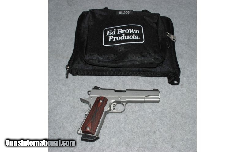 Description: Ed Brown Custom stainless with Ed Brown soft case. SOLD Caliber Info: 9MM Metal Condition: ANIB Wood Condition: Grips are ANIB Bore Condition: ANIB Barrels: 5" Stainless Steel Triggers: Grooved match trigger adjustable Stock: Walnut checkered grips. Weight: 3 lbs Sights: Trijicon three dot night sights. Extras: Comes with soft case. Item Location: Lacey, WA |