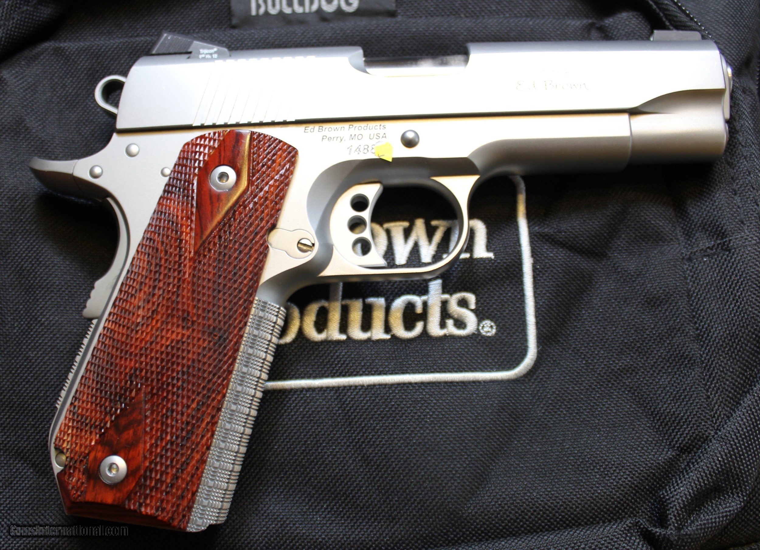 Description: Got an Ed Brown Executive Carry 1911 Skip Checkered 45ACP Stainless Steel for sale Look closely at the pictures as what you see in what you get. You are welcome to ask questions and ask for additional pictures. We have a total of 39 pictures but only listed 25. Just be prepared for a large download and a long time to email. Our internet connection is VERY slow in the country. This came from the estate of an FFL/SOT Gun Smith, Gun Store that is out of business. This is or was inventory. Please check the pictures to check condition. There will be countless other listings from this inventory over the next 4 to 5 years. We are selling for the store. This is NOT a liquidation. There are no lists and will be no lists. Just keep checking the other listings Please check our other listings for the items. NOTE: Look close at the pictures posted As is means AS IS. There is no refund You are welcome to check out our webpage or facebook page at P&T Partners Shipping is NOT included add $35 for USPS and full insurance to your FFL. Price is for Certified Funds meaning Certified Check or USPS Money Orders Credit or Plastic in any form, shape or manner add 3% NOTE: Credit by PHONE only WE DO ACCEPT PERSONAL OR BUSINESS CHECKS, BUT THERE IS A GRACE PERIOD OF 10 BUSINESSS DAYS ON THEM. WE DO OFFER A LAYAWAY PLAN. YOU CAN LAYAWAY up to 90 DAYS . WE ALSO REQUIRE A 20% DOWN PAYMENT ON TOTAL OF LAYAWAY SALE in 7 Business days. LAYAWAYS ARE NON- REFUNDABLE. There are NO, repeat NO Credit Cards allowed on Lay-a-way. Certified funds ONLY. . I post on many of the firearms forums as PT-Partners. This is an FFL to FFL Transaction, as PT-Partners is a retail/FFL Dealer. For those that are local, there is no Face To Face. On Line means On Line General Information: FFL (Federal Firearms License) is required. Be prepared to obtain a copy of your local FFL holders license. For all in states where the local laws restrict this type of firearms, DO NOT BUY. If your local laws restrict the magazine capacity, again do not buy. I have no idea if this is a California Qualified firearm, but I do ship to CA if you check other listings and something fits CA DOJ. If you are CA and you can PROVE, and your RECEIVING FFL contacts me, I will ship this to CA SOLD |