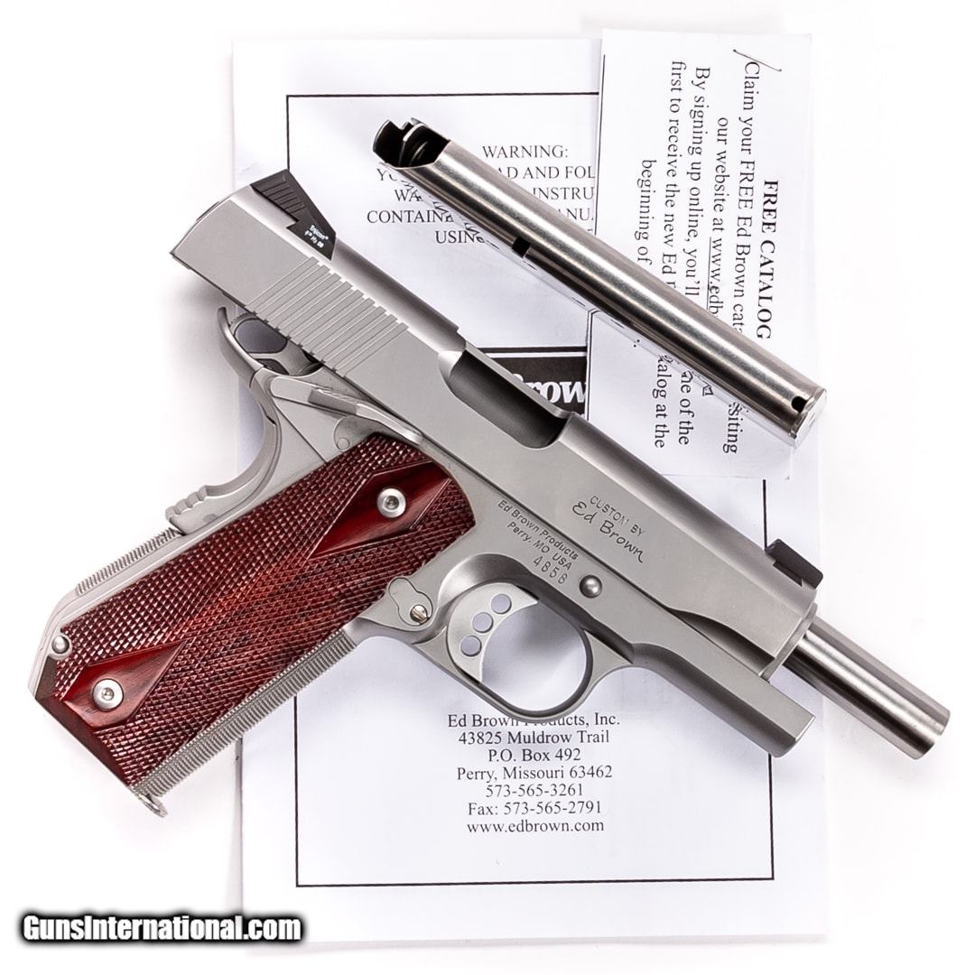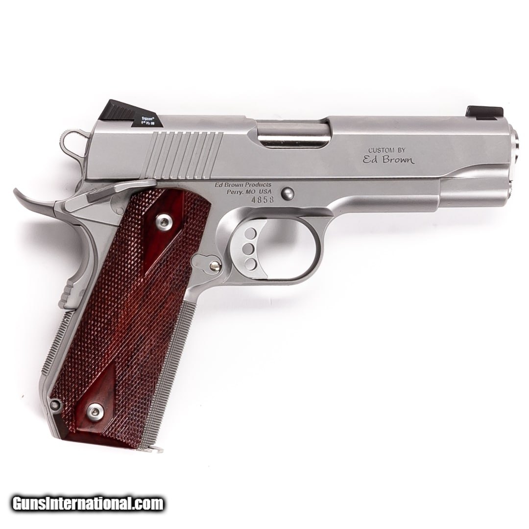 Description: Guns Listing ID: 212274 Just as the name suggests, this Ed Brown Executive Carry is a premium, 1911-style handgun made for personal protection and concealed carry. Chambered in 45 ACP, this pistol sports 25 line-per-inch checkering for a secure grasp, skeletonized trigger and hammer for lightning-fast follow-up shots, and a matte finished slide to reduce glare. This single-action Executive Carry is in very good condition and comes with two 7-round magazines, the owner's manual, and a range bag. SOLD Manufacturer: ED BROWN Model: EXECUTIVE CARRY Caliber Info: 45 ACP Condition: Used - Certified Barrels: 4.2 BARREL Finish: STAINLESS |