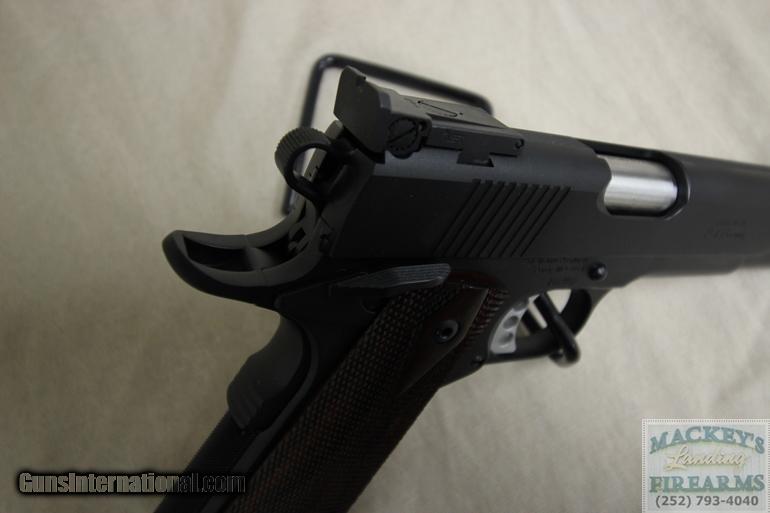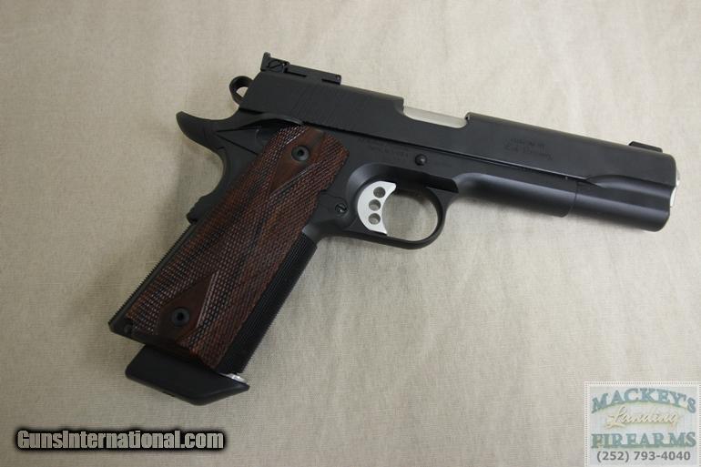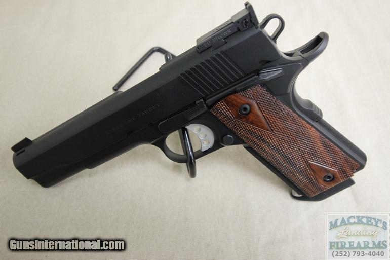 Description: Ed Brown Executive Target 1911 45 ACP w/checkered wood grips. This fine pistol has been shot very little, and has the Ed Brown bag included. The Ed Brown says: The Executive Target is essentially the Executive Elite modified for precise target and range work. Instead of fixed night sights, it has an adjustable rear sight. The top of the slide has been flattened and finely grooved at 40 LPI, which naturally guides your eye to the front sight and eliminates distracting glare. Known as our best firearm for target shooting, this elegant design has a beautiful simplicity that has yet to be matched. Unique with the Executive series pistols is the 25 LPI checkered frame and mainspring housing. This pattern is not too rough on the hands, but not too fine for a secure grip. The timeless design reflects the genius of John Browning with modern flair. The Executive Target is truly at the top of it's field. Get promoted to an Executive Target - it's a serious tool for the competent professional! The Executive Target features the following: 5" Government model slide, single stack government model frame. The John Browning traditional design for the ultimate in reliability and accuracy. Weight: approximately 38 ounces with an unloaded magazine inserted. Exclusive 25 LPI checkering on forestrap and mainspring housing. Optional Gen4 coating for low glare, superior rust protection, and improved wear resistance. Matte finished slide for low glare, with traditional "square cut" serrations on rear of slide only, top of slide is flattened and finely grooved at 40 LPI. Adjustable rear sight buried deep into slide, cross dovetail front sight. For more information call 252-793-4040. Please reference our inventory # 52556. FFL required for shipping. No shipping outside the US. SOLD |