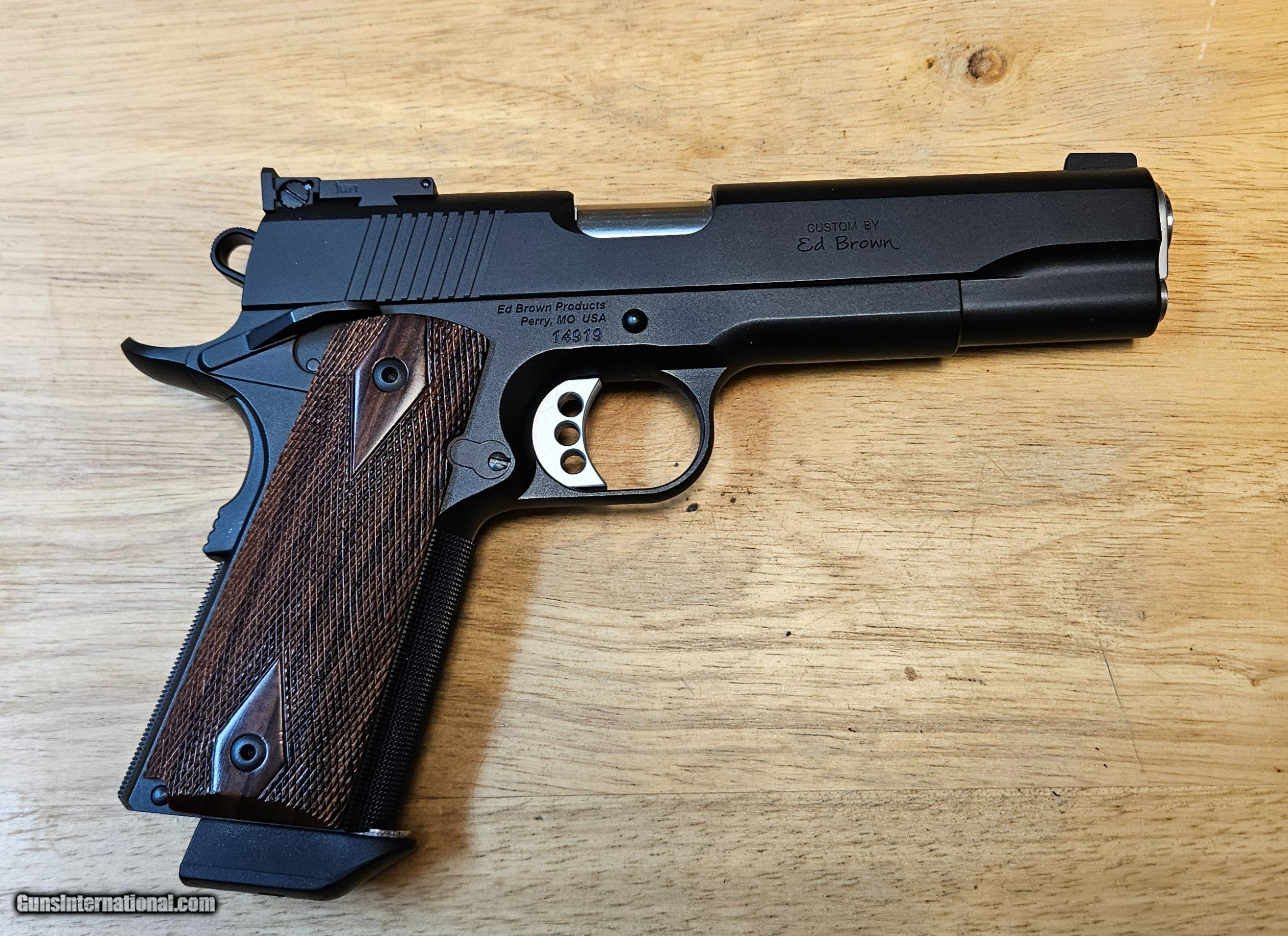Description: Ed Brown, Model: Executive, Cal: 45 acp, Action: S/A, BBL: 5", **Comes with a pouch** SOLD Handgun Caliber: .45 ACP (.45 Auto) Manufacturer: Ed Brown Model: Executive Serial Number: 14919 Barrel Length: 5 Condition: Excellent Metal Condition: Excellent |