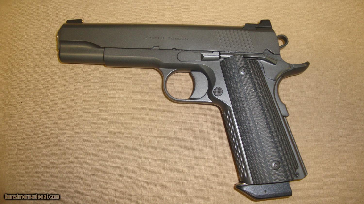 Description: Ed Brown Special Forces .45 ACP. Built for pure performance and extreme use, the Special Forces pistol from Ed Brown has everything you need for serious performance. All the engineering, precision manufacturing, and hand-fitting the Brown family is famous for is included, and we've added to that a new severe use coating for improved wear resistance and rust protection. A unique and highly durable Chainlink III pattern provides a secure grip for severe applications. The Special Forces features the following: