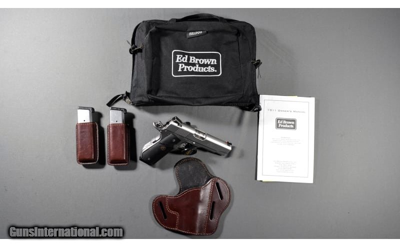 Description: Built for pure performance and extreme use, the Special Forces pistol from Ed Brown has everything you need for serious performance. All the engineering, precision manufacturing, and hand-fitting the Brown family is famous for is included, and we've added our severe use coating for improved wear resistance and rust protection. A unique and highly durable Chainlink III pattern provides a secure grip for severe applications, and we've added a recessed slide stop and flattened and serrated top of slide to finish off the package. .45 ACP SOLD Bore Condition: "Very Good, Healthy Rifling Barrels: 4 Weight: 4lbs Item Location: Lacey, WA |