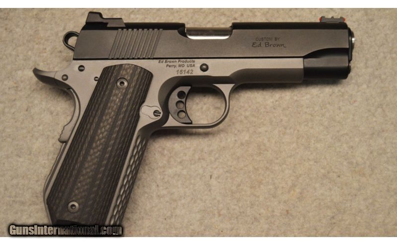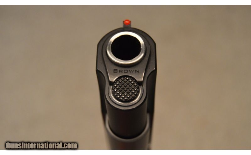 Description: Built for pure performance and extreme use, the Special Forces pistol from Ed Brown has everything you need for serious performance. All the engineering, precision manufacturing, and hand-fitting the Brown family is famous for is included, and we've added our severe use coating for improved wear resistance and rust protection. A unique and highly durable Chainlink III pattern provides a secure grip for severe applications, and we've added a recessed slide stop and flattened and serrated top of slide to finish off the package. SOLD Caliber Info: .45 Auto Metal Condition: Very good condition, very little signs of use Wood Condition: Smooth and in good condition Bore Condition: Clean Barrels: 4 1/2 Triggers: Factory Sights: Front fiber optic sight Extras: Soft Case Item Location: Fort Worth, TX |