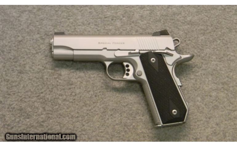 Description: This is a new Ed Brown Special Forces Carry in .45 ACP. This pistol is built for pure performance and extreme use, the Special Forces Carry pistol from Ed Brown has everything you need for serious performance. All the engineering, precision manufacturing, and hand-fitting the Brown family is famous for is included, and they've added to that a new severe use coating for improved wear resistance and rust protection. A unique and highly durable Chainlink III pattern provides a secure grip for severe applications. The Special Forces Carry features the following a 4.25" Commander Model slide, single stack commander Bobtail frame. The John Browning traditional design innovatively modified for concealed carry, without significantly detracting from reliability or accuracy. The Weight is approximately 35 ounces with an unloaded magazine inserted. It has the exclusive Chainlink III treatment on forestrap and Bobtail housing for the ultimate in durability, secure grip, and extreme use. It is finished with the Gen4 coating for low glare, superior rust protection, and improved wear resistance. It has traditional "square cut" serrations on rear of slide only, and fixed dovetail 3-dot night sights with high visibility white outlines. SOLD Caliber Info: .45 ACP Metal Condition: New Wood Condition: New Bore Condition: New Barrels: 4.25 Triggers: Aluminum 3-hole. Stock: Black double diamond checkered polymer grips. Weight: 35 oz Sights: Fixed dovetail 3-dot night sights with high visibility white outlines. Extras: New in box. Item Location: Glendale, AZ |