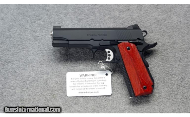 Description: Ed Brown Special Forces Custom .45 A.C.P. This gun is new in the box, unfired. SOLD Manufacturer: New Metal Condition: New Wood Condition: New Bore Condition: New Barrels: 4 1/4" Bushed Triggers: Single Action Long Skeletonized Adjustable Stock: Diamond Checkered Wood Fore End: Scaled Butt Pad: Scaled Flat Bobtailed Mainspring Housing Weight: 2 Lbs., 4 Ozs. Sights: Three Dot Tritium Extras: Pouch, Manual, Box, Lock. Item Location: Glendale, AZ |