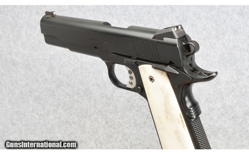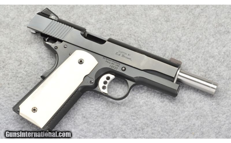 Description: Ed Brown Special Forces in 45 ACP. Steel Construction with Black Gen4 finish, Chainlink III treatment on the frame and housing. Couple cosmetic imperfections otherwise, a solid 1911. SOLD Caliber Info: 45 ACP Metal Condition: Black Finish, Slight rub on the right side of the slide Bore Condition: Bright and Sharp Barrels: 5 Inch Match Grade Stainless Bushing Barrel Triggers: Match Grade Stock: Horn Grip Panels Weight: 40 Ozs Sights: Dovetailed Trijicon Front and Rear Sight Item Location: Buda, TX |
