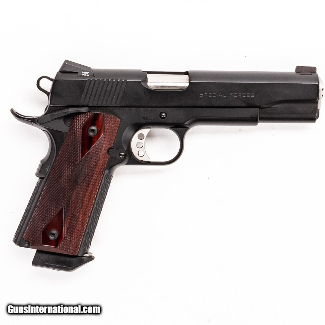 Description: Guns Listing ID: 355158 This Ed Brown Special Forces is a rendition of the 1911 and is custom built as a quality combat handgun. In recognition to the legacy of the 1911, this edition's name recognizes the service if this pistol with the American warfighter for over 100 years. The 1911 was a popular choice among special forces troops for many decades. This pistol features four 8-round magazines and comes in the original case. SOLD Manufacturer: ED BROWN Model: SPECIAL FORCES Caliber Info: .45 ACP Condition: Used - Certified Barrels: 5 BARREL Finish: BLACK |