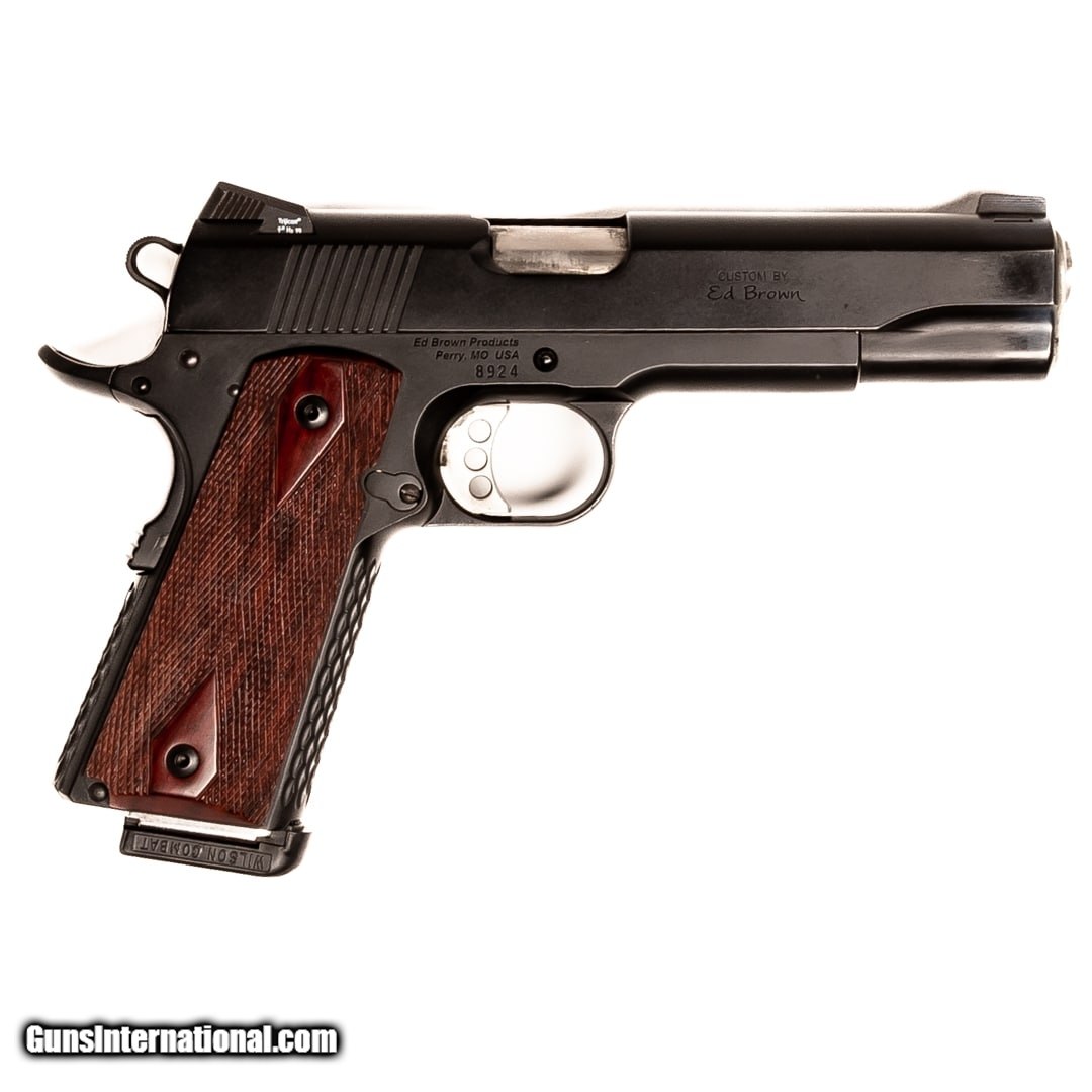 Description: Guns Listing ID: 769423 This Ed Brown Special Forces is a variant of the 1911, custom built as a quality combat handgun. In recognition of the legacy of the 1911, this edition’s name recognizes the service of this pistol with the American warfighter for over 100 years. The 1911 was a popular choice among special forces troops for many decades. Sturdy, durable, and dependable, it features a severe use treatment that provides wear resistance and protection from rust. This Special Forces features Trijicon night sights and includes the original soft case and one 7-round magazine. Get the best bang for your buck when you get a Certified Used Firearm . When you see the Certified Used stamp on any of our firearms, you can be confident that you’re getting exactly what you want – a gun only in very good to excellent condition and held to the highest quality standard. All Certified Used Guns come with a ‘no questions asked’ return policy . PLUS, ALL CERTIFIED USED GUNS SHIP FREE! SOLD Manufacturer: ED BROWN Model: SPECIAL FORCES Caliber Info: .45 ACP Condition: Used - Certified Barrels: 5 BARREL Finish: BLACK |