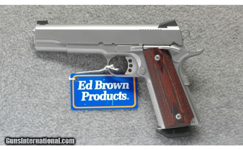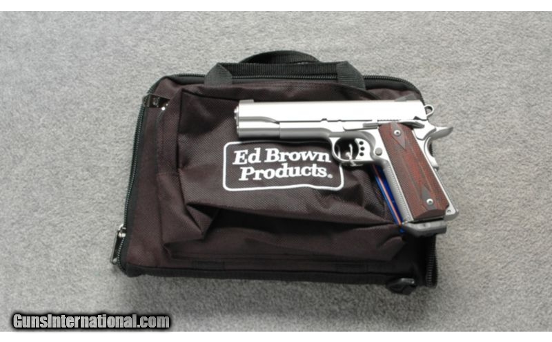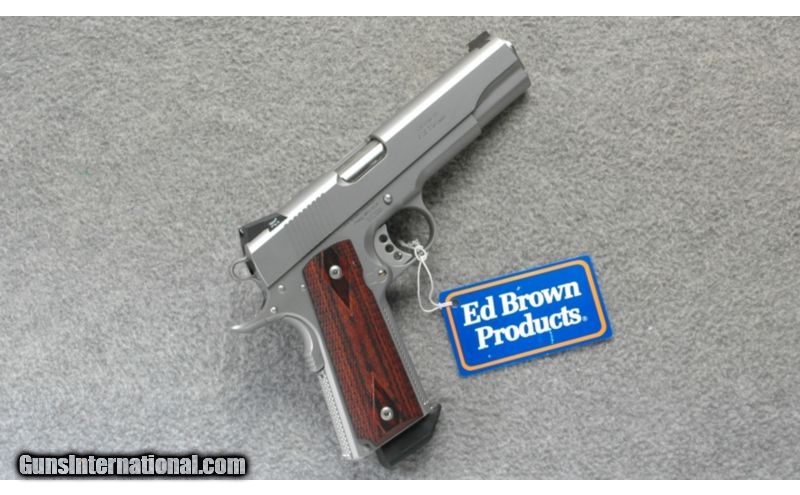 Description: This is a factory direct like new Ed Brown Stainless Special in 9mm with a 5 inch barrel. This pistol has all of the features of the Special Forces model but in 9mm. This is a Built for pure performance and extreme use, the Special Forces pistol from Ed Brown has everything you need for serious performance. All the engineering, precision manufacturing, and hand-fitting the Brown family is famous for is included, and we've added to that a new severe use coating for improved wear resistance and rust protection. A unique and highly durable Chainlink III pattern provides a secure grip for severe applications. It features a 5 inch Government model slide, single stack government model frame. The John Browning traditional design for the ultimate in reliability and accuracy. The exclusive Chainlink III treatment on forestrap and mainspring housing for the ultimate in durability, secure grip, and extreme use. Traditional "square cut" serrations on rear of slide only. Fixed dovetail 3-dot night sights with high visibility white outlines. This pistol is in excellent “like new” condition showing no wear. SOLD Caliber Info: 9mm Metal Condition: Like new. Wood Condition: Like new. Bore Condition: Like new. Barrels: 5 Triggers: Classic "Three hole style" long aluminum trigger. Stock: Checkered double diamond laminate wood grips. Weight: 2 ½ lbs. Sights: Fixed dovetail 3-dot night sights with high visibility white outlines. Extras: Comes with the factory soft case, manual, 1 Ed Brown magazine with bumper, oil, and padlock. Item Location: Glendale, AZ |
