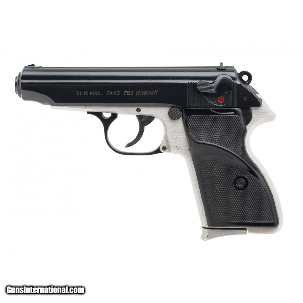 Description: " SN: BE7314 PA-63 made by FEG in c. 1970s. 3 3/4 inch barrel chambered in 9x18mm Makarov. Excellent condition with minor handling marks on the thumb-rest grips. Collectible Hungarian police and military pistol patterned after the Walther PP series, in competition with the Makarov PM and P64 pistols. Austin Location SOLD |