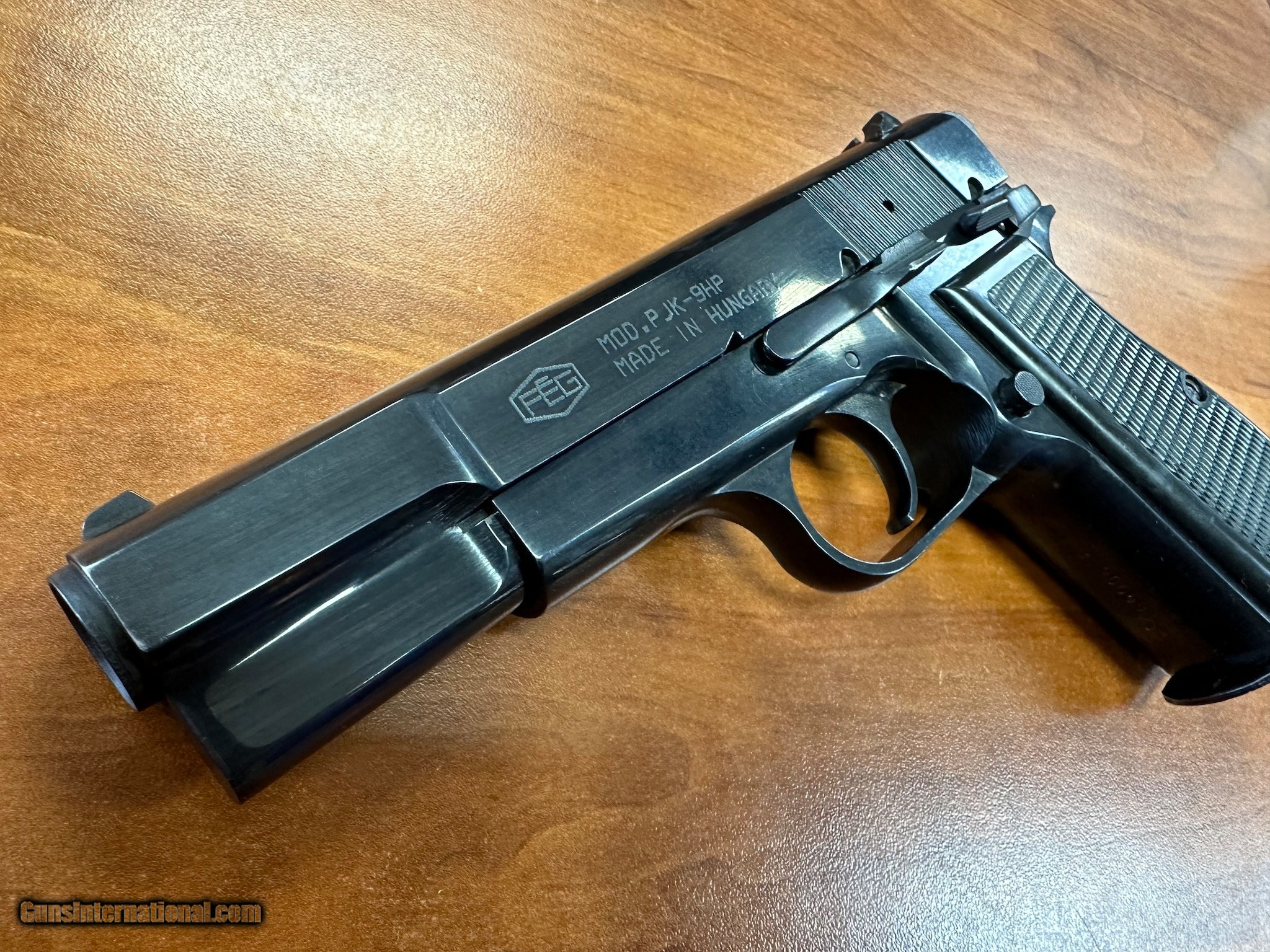 Description: Guns Listing ID: 715062 This FEG PJK-9HP is in excellent condition. It has been fired very little, if at all. It includes all factory packaging and documentation and one magazine. See photos for details. SOLD Manufacturer: FEG Model: PJK-9HP Caliber Info: 9X19MM Condition: Used - Non-Certified Barrels: 4.5 BARREL Finish: BLUED |