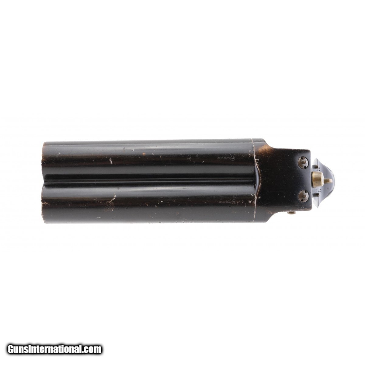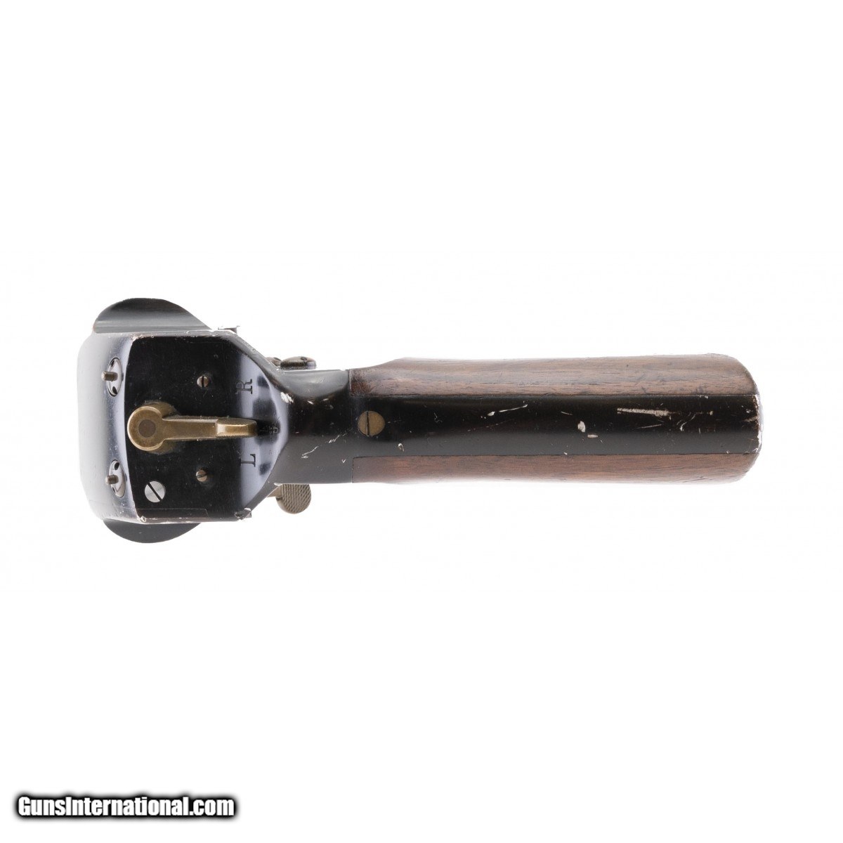 Description: " This is excellent 26.5mm Luftwaffe Aviators Flare Gun L was made by Emil Eckholdt of Suhl. This early gun has crown over B followed by crown over U proofs followed by a circled 4 (4 bore or 26.5mm) on each barrel. The frame and barrel are serial numbered 460. The left side of the frame at the front is marked with the Luftwaffe contract number, Fl.24483. The left rear of the frame has ECKO in an oval (Emil Eckholdt) over a Luftwaffe eagle over an S. It retains approx. 95% of its black paint over aluminum finish. The grips are excellent with no cracks or chips. The action is break open with a bottom lever, a barrel selector on the rear, and safety on the left above the trigger. This is a super double barrel Luftwaffe flare pistol. Don't miss it! SOLD |