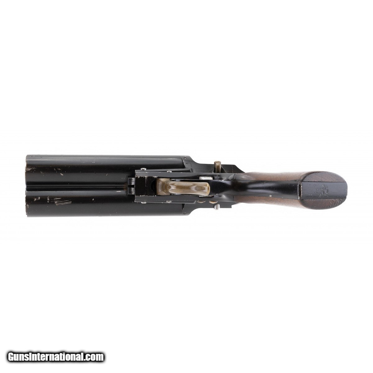 This is excellent 26.5mm Luftwaffe Aviators Flare Gun L was made by Emil Eckholdt of Suhl. This early gun has crown over B followed by crown over U proofs followed by a circled 4 (4 bore or 26.5mm) on each barrel. The frame and barrel are serial numbered 460. The left side of the frame at the front is marked with the Luftwaffe contract number, Fl.24483. The left rear of the frame has ECKO in an oval (Emil Eckholdt) over a Luftwaffe eagle over an S. It retains approx. 95% of its black paint over aluminum finish. The grips are excellent with no cracks or chips. The action is break open with a bottom lever, a barrel selector on the rear, and safety on the left above the trigger. This is a super double barrel Luftwaffe flare pistol. Don't miss it!