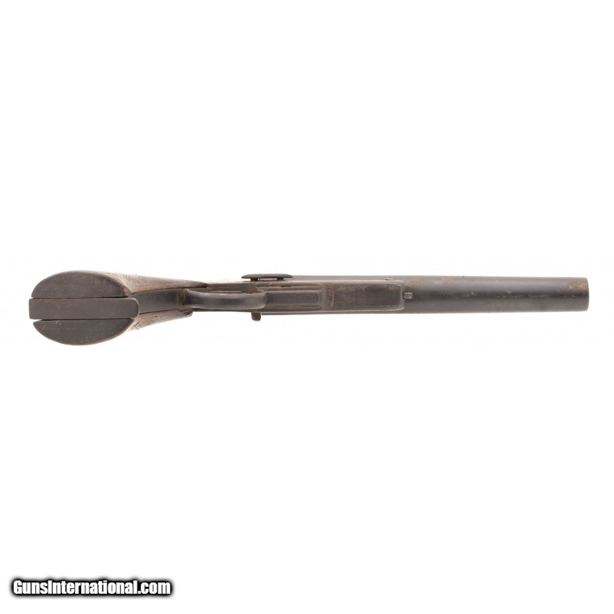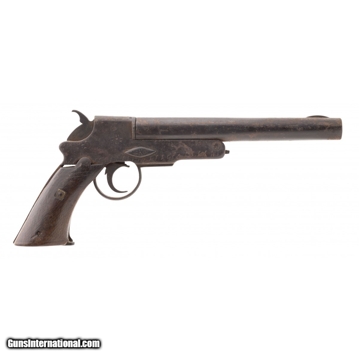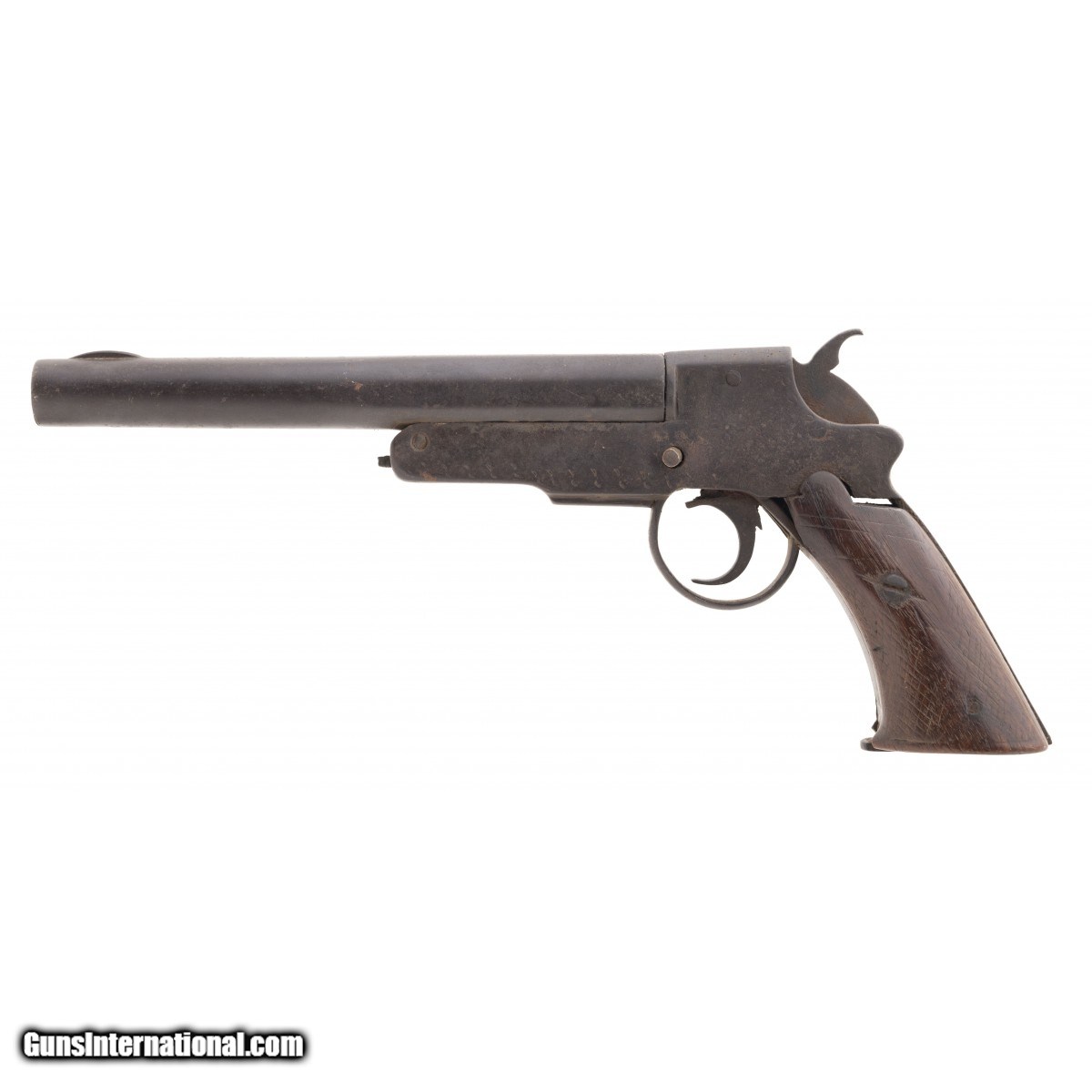 Description: " Unusual flare gun that has been engraved. Gun has a dark brown patina and is unmarked. SOLD |