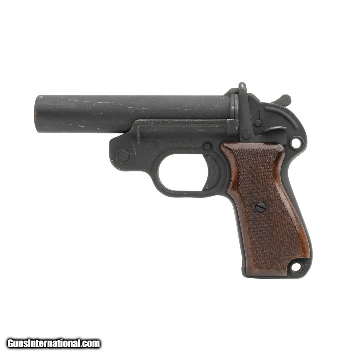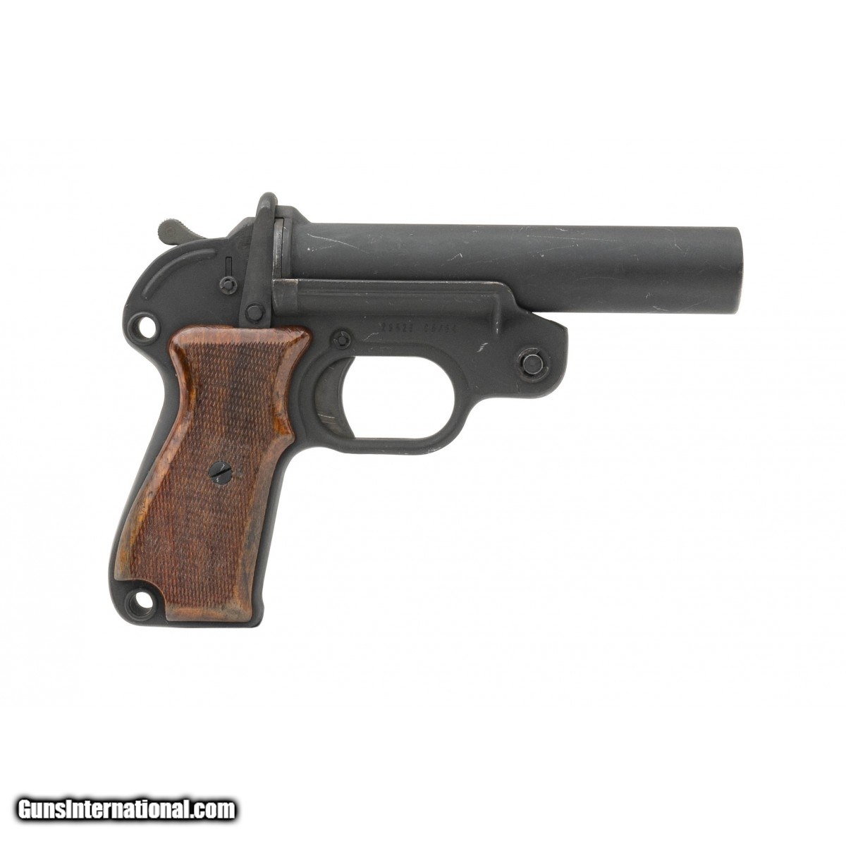 Description: " Geco marked West German Military Flare Gun. 26.5M/M, Dated 06/61. Excellent condition with holster rig. SOLD |