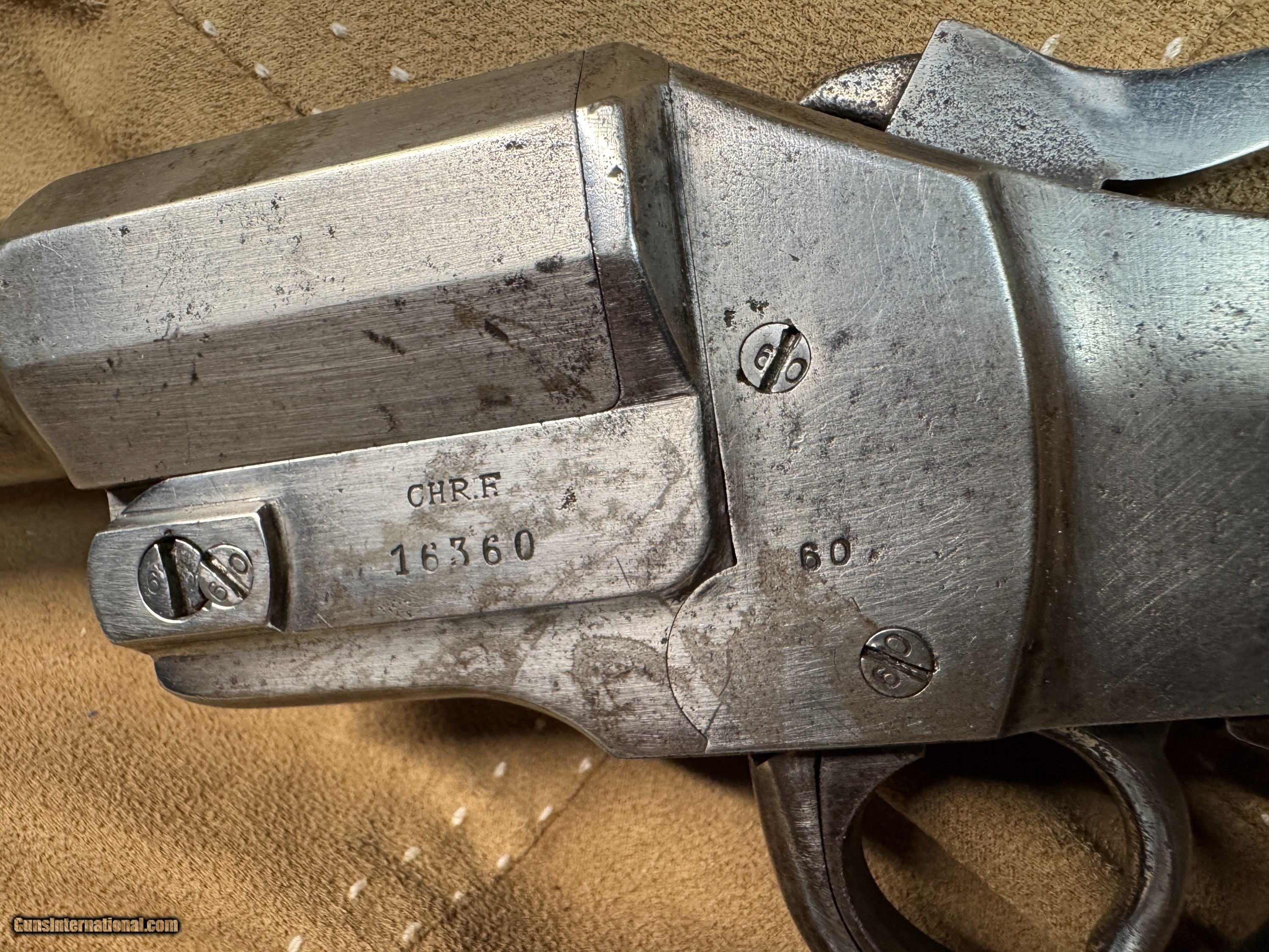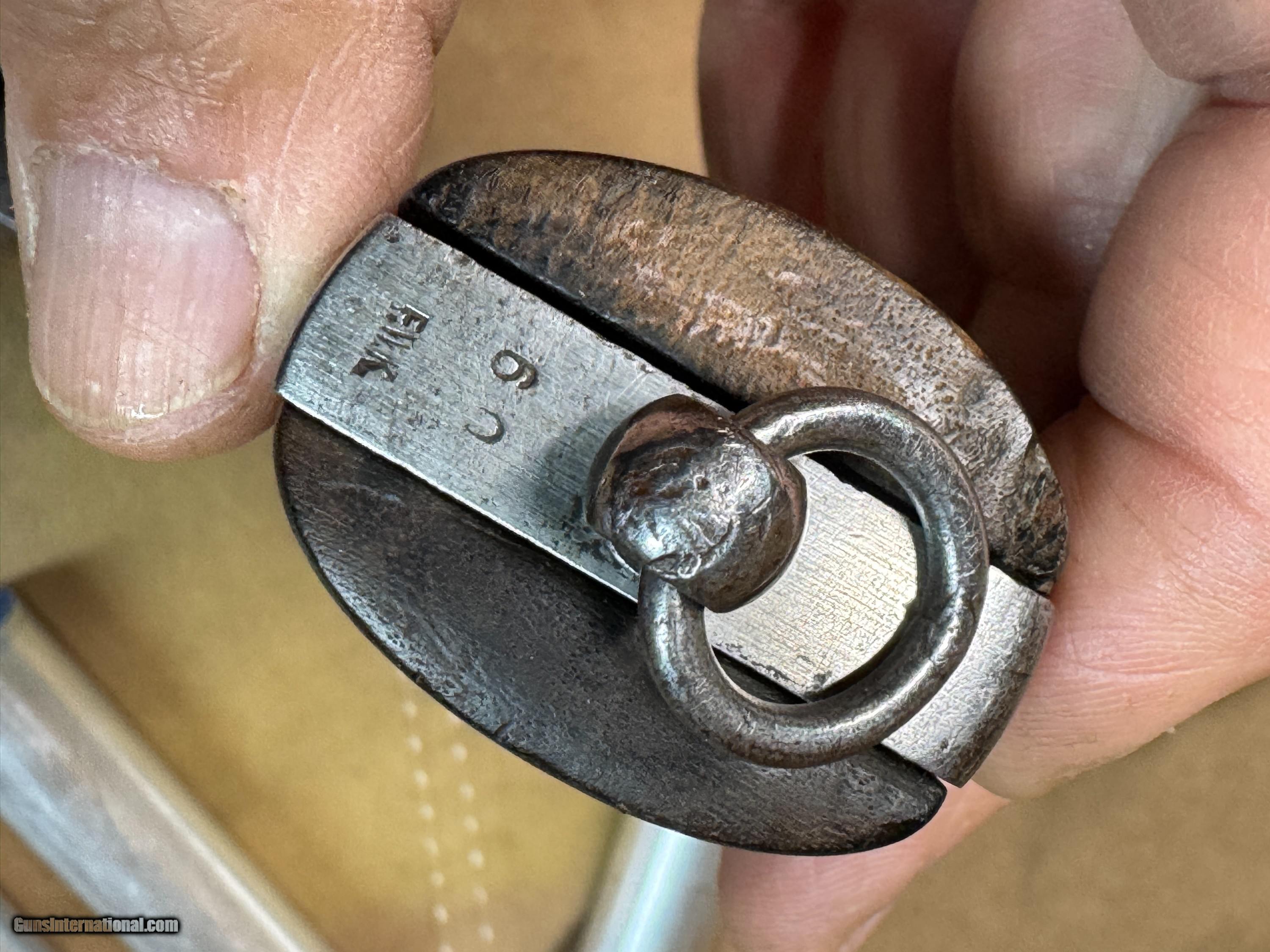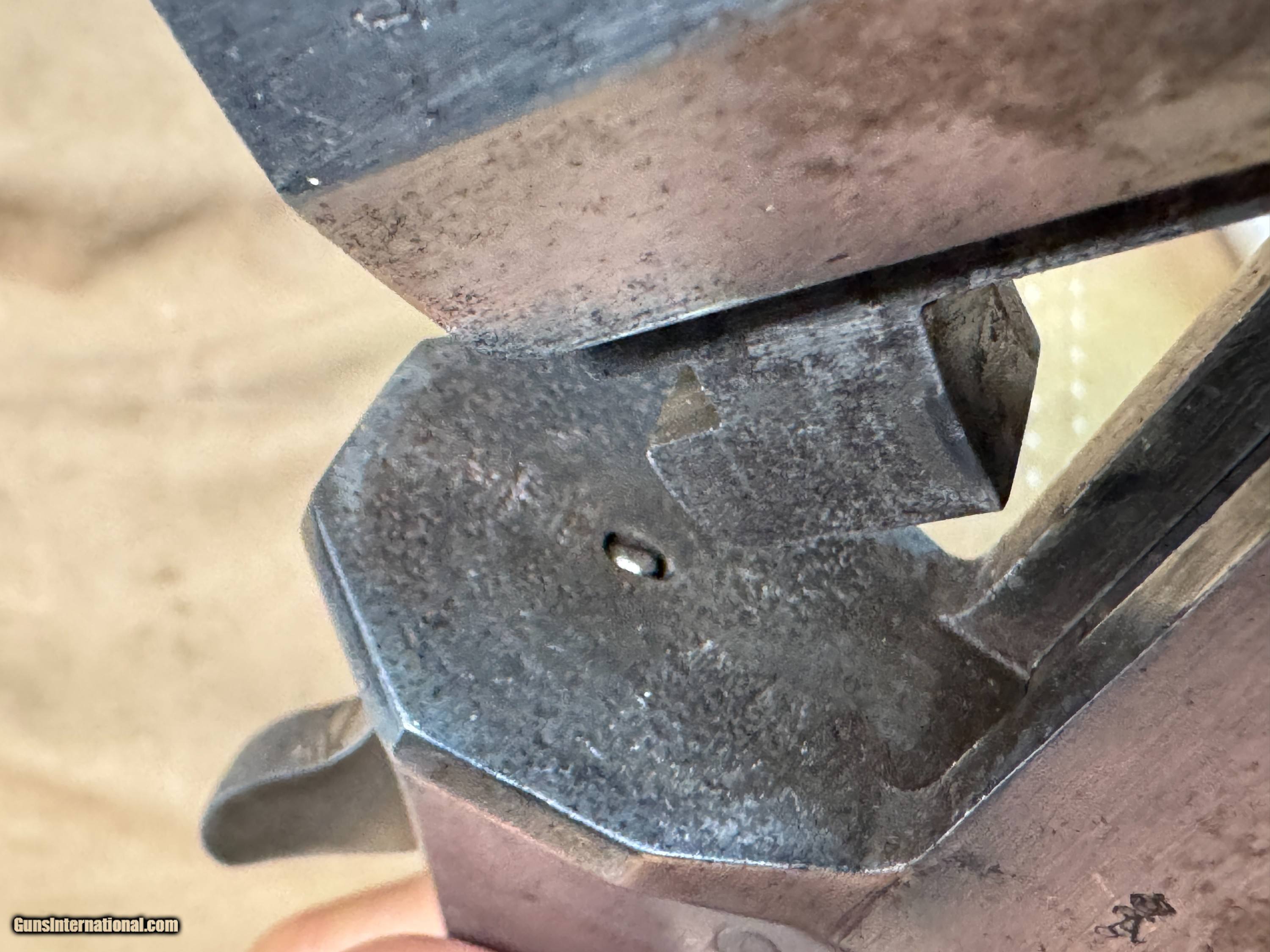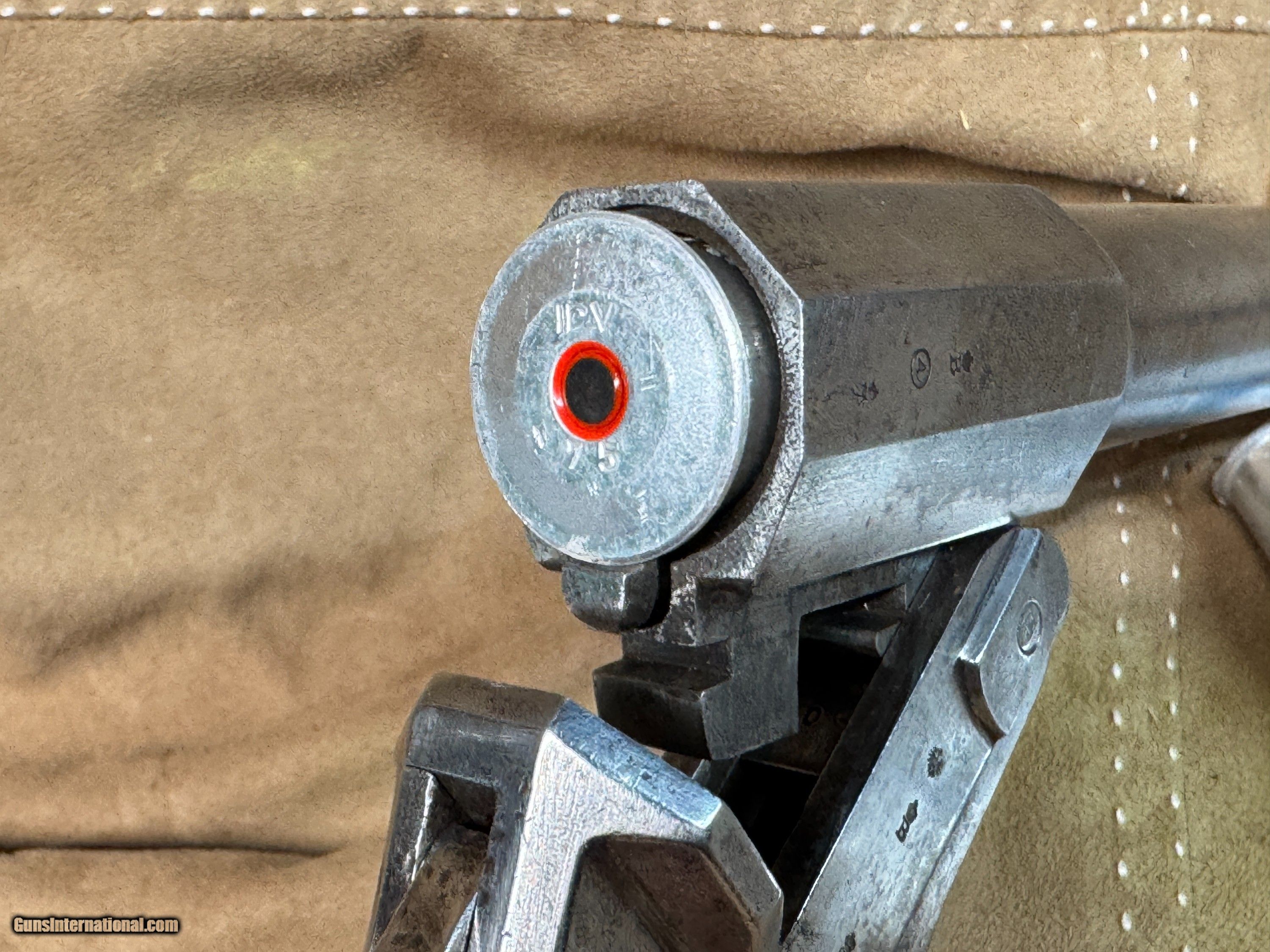 Description: Good looking gun all assembly numbers (60) match. The gun has a lot of proof and marke on one side. The other has CHR.F 16360 . Mechanically very solid. 3 live flares one of 4 was tested near hit the moon. This model was nickle plated seen on areas on the receiver.search as follows. These flares are near impossible to find. Im adding them to the listing rather than selling them seperately. Original German WWI Model 1894 Hebel Flare Pistol by Christoph Funk - Serial 16360 SOLD Antique: Yes |