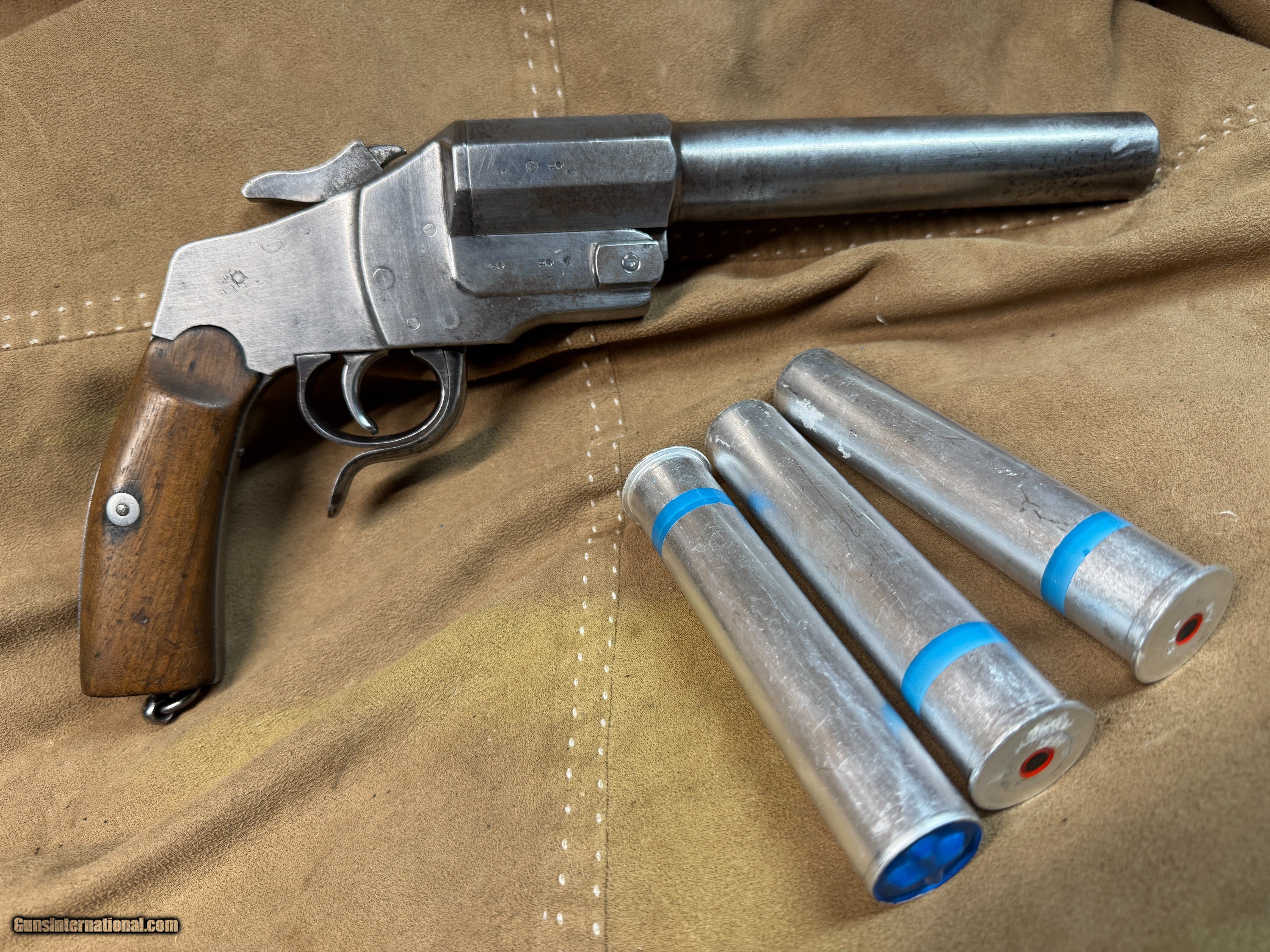Original Antique `German WWI Model 1894 Hebel Flare Pistol by Christoph Funk with 3 flares