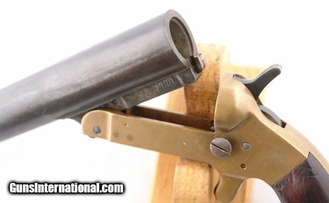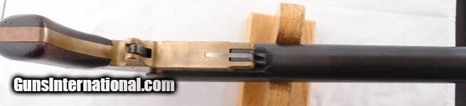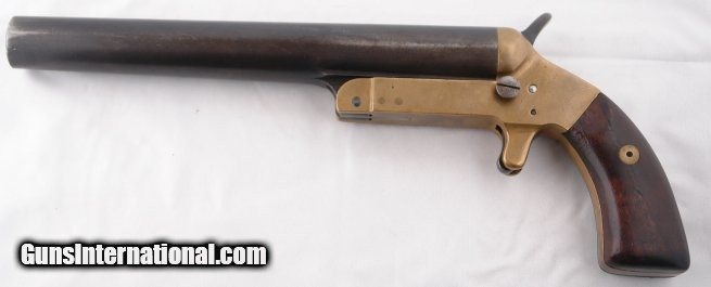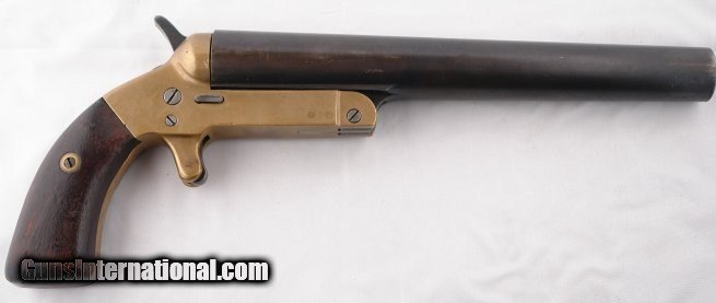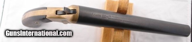 Description: REMINGTON MARK III SIGNAL PISTOL CIRCA 1915. 10 gauge with 9” round barrel addressed “REMINGTON ARMS-UNION METALLIC CARTRIDGE CO. INC./MARK III/BRIDGEPORT WORKS BRIDGEPORT, CONNECTICUT, USA”. All matching and original in fine condition with 90% blue showing light wear. Mellow brass frame and excellent original grips. Good bore and working order. SOLD |