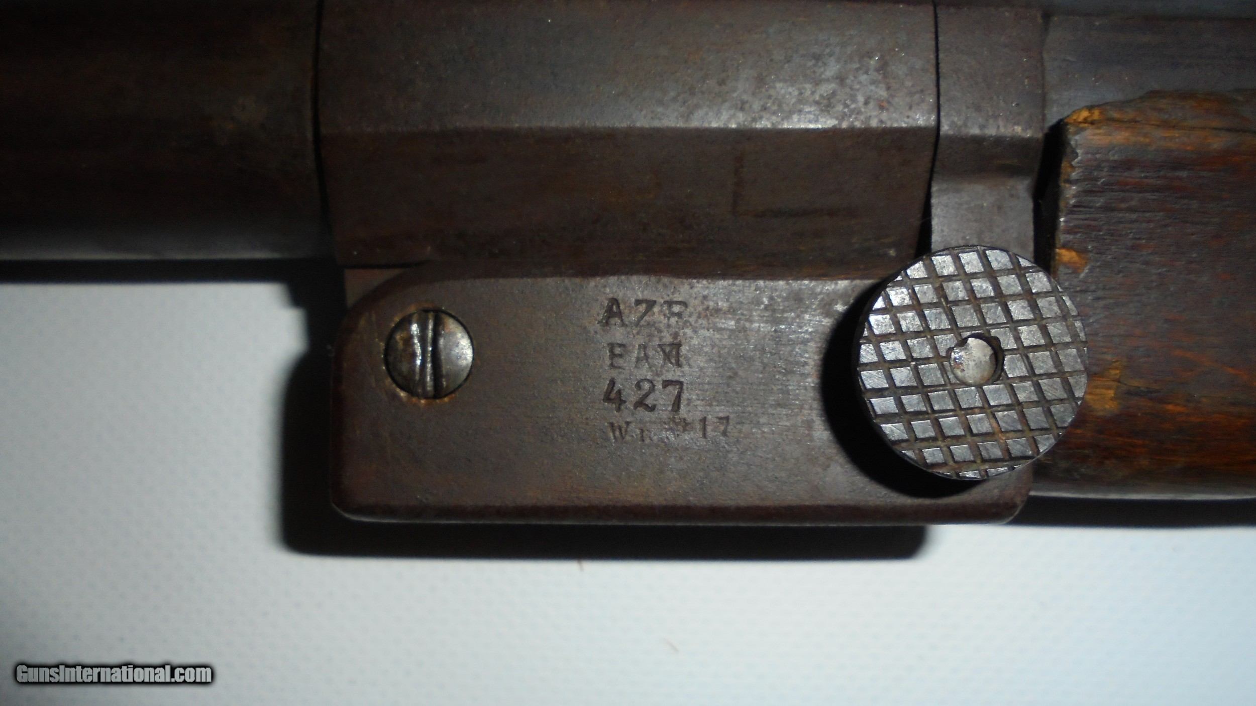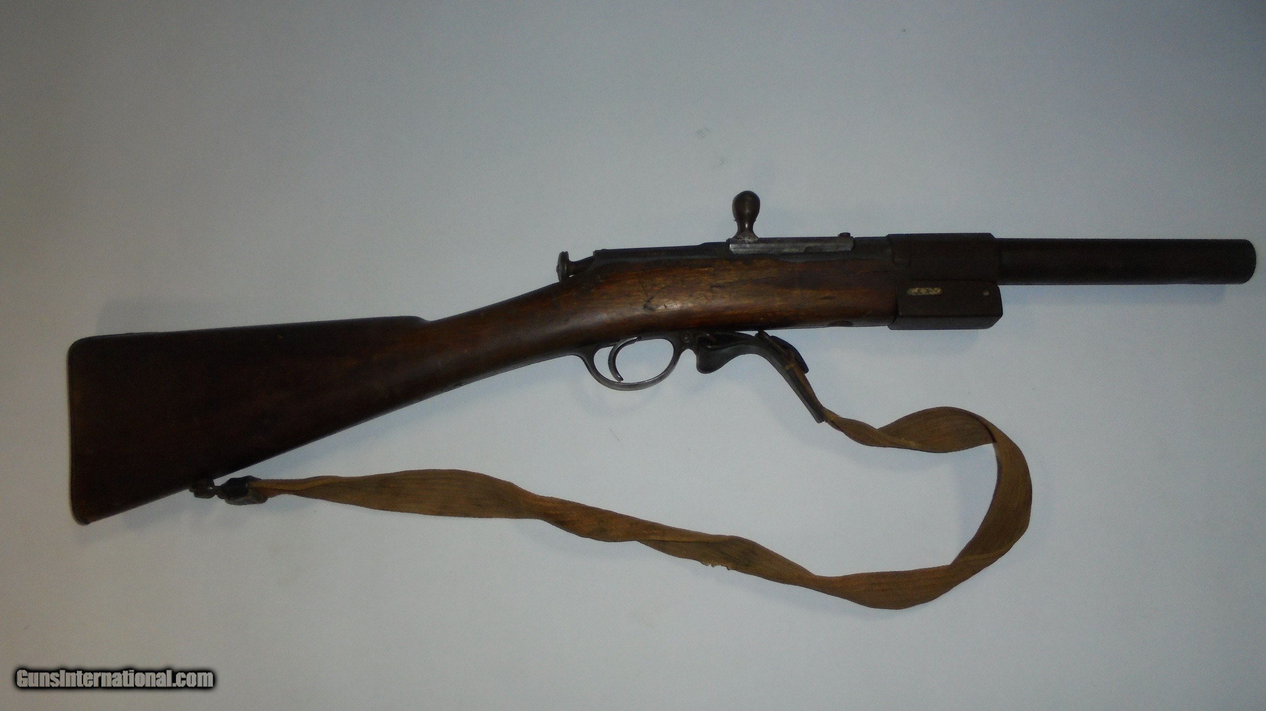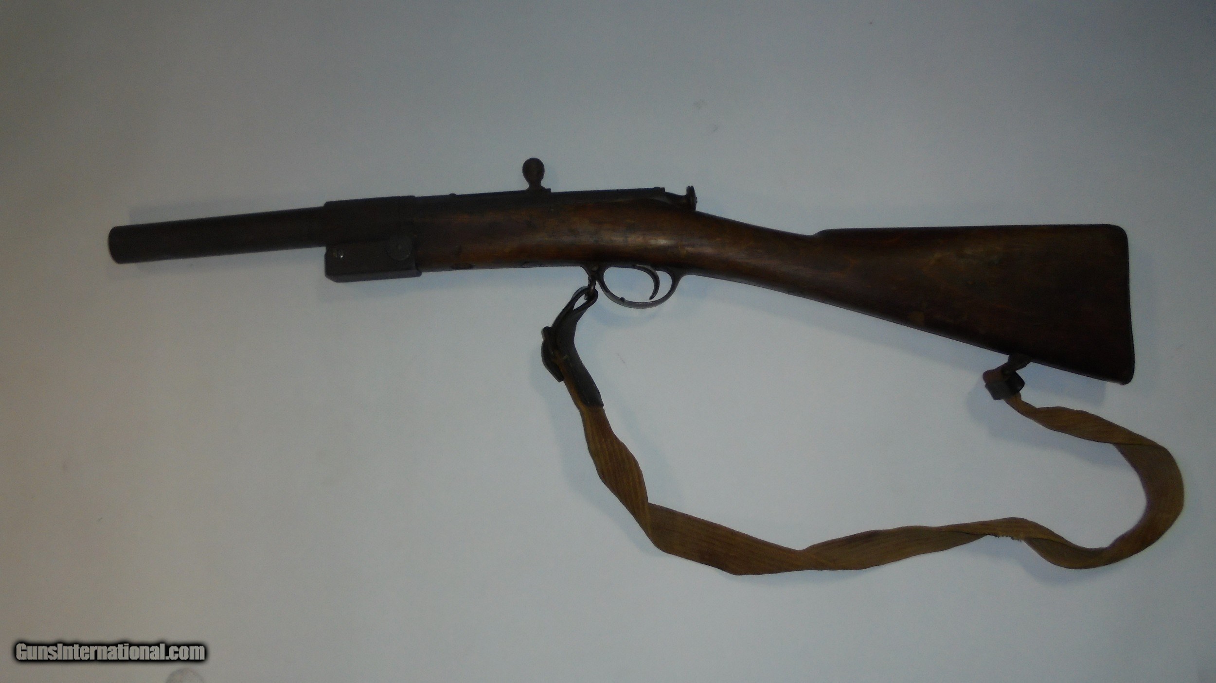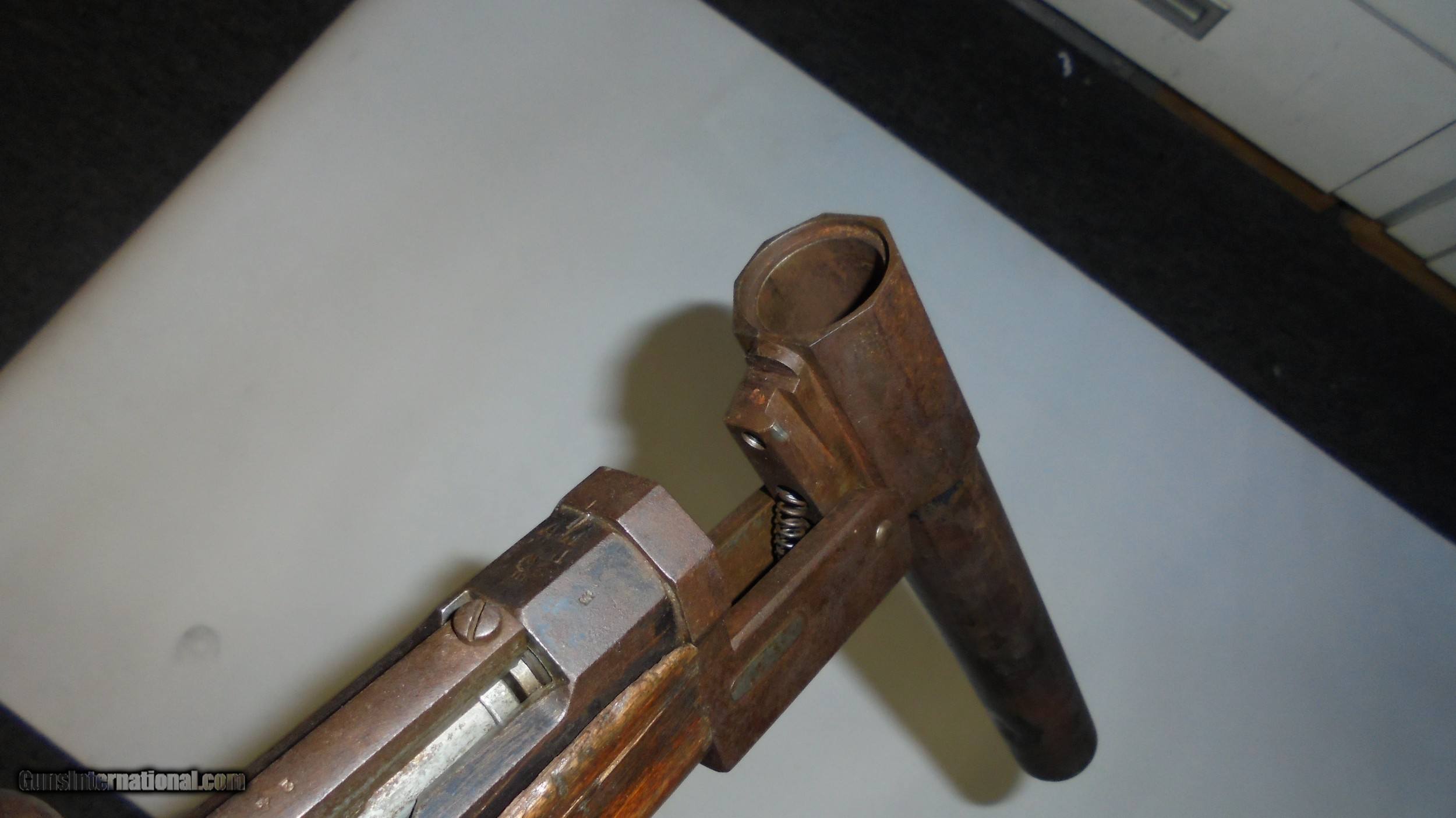 Description: THIS IS ONE OF THE RAREST FLARE GUNS OF THE 20TH CENTURY. THERE ARE A FEW KNOWN EXAMPLE IN EUROPE AND ONE IS IN THE IMPERIAL WAR MUSEUM. THIS IS A RUSSIAN 1870’S ERA BERDAN RIFLE THAT WAS CAPTURED BY THE AUSTRIANS AND CONVERTED TO A FLARE CARBINE BY THEM AND IT IS SO MARKED AND HAS A 1917 DATED MILITARY ACCEPTANCE PROOF. NOT A LOT IS KNOWN ABOUT THESE FLARE GUNS BUT THEY SEEM TO HAVE BEEN USED BY THE STORMTROOPERS AND THERE IS AT LEAST ONE PICTURE KNOWN SHOWING ITS USE BY THEM. I AM UNCERTAIN AS TO ITS USE WHETHER OR NOT IT SHOT JUST FLARES OR SOME OTHER TYPE OF PROJECTILE OR GRENADE AS WELL. THIS IS NOT A FIREARM AND IF IT WAS IT WOULD BE AN ANTIQUE SO NO LICENSE IS REQUIRED. THE WEAPON IS IN AVERAGE CONDITION. SOLD Curio/Relic: Yes Antique: Yes Manufacturer: Russian Military Model: Berdan Condition: average Metal Condition: average Wood Condition: average Bore Condition: average |