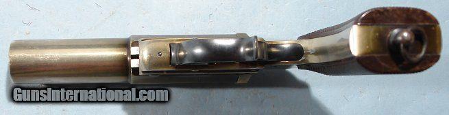 Description: WW2 OR WWII WALTHER HEERES MODEL 1928 DATED 1937 26.5MM WW2 ALUMINUM FLARE OR SIGNAL PISTOL. Stamped on frame with Nazi proofs and “waffenamt/ 359” in several places. Walther banner and Zella Mehlis" address. Very near mint with the black original finish turning straw. Mint grips. Original lanyard ring. Looks unused. Superior example in perfect working order. SOLD |