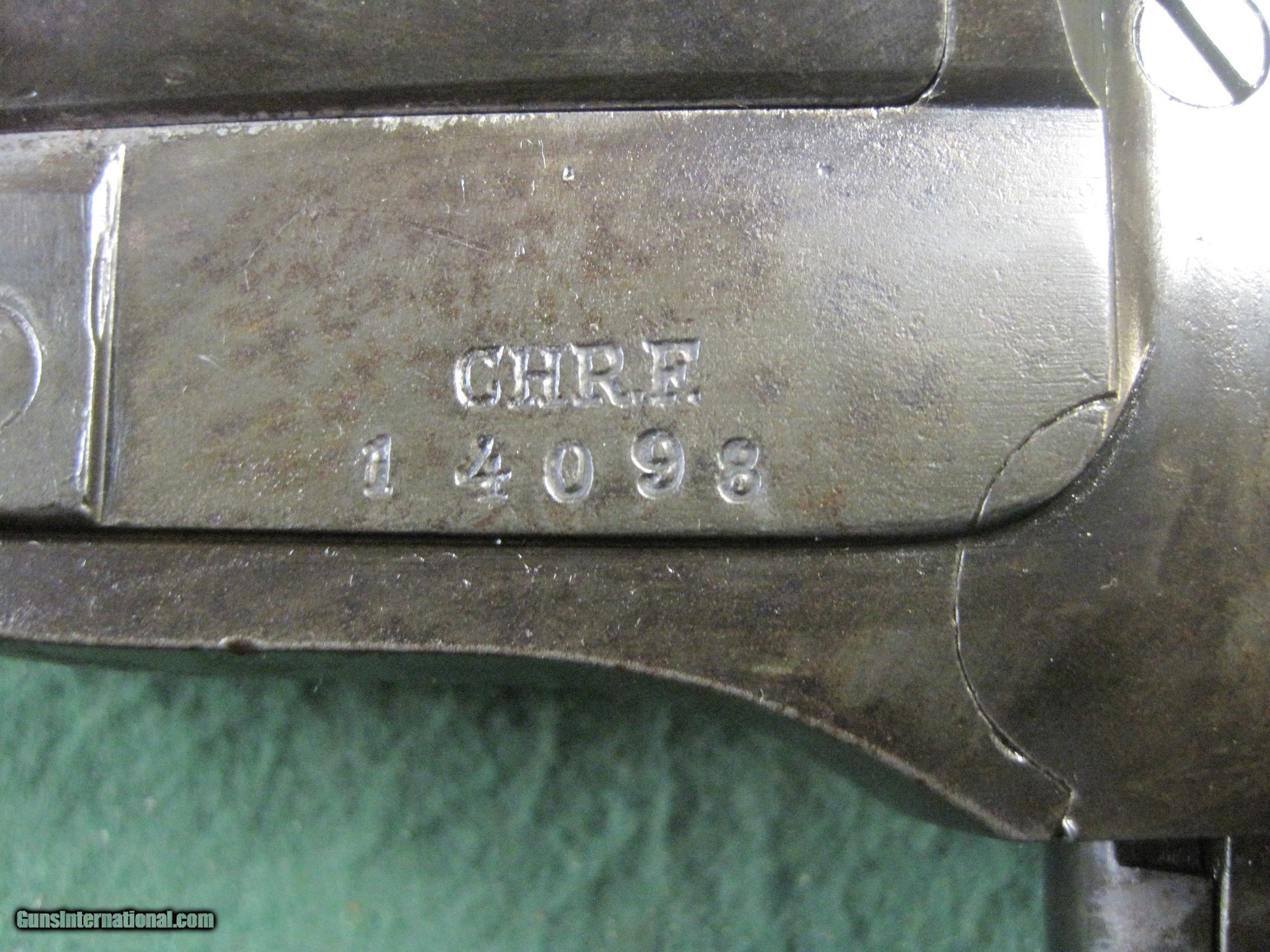 Description: Although this model pistol is fairly common I have been unable to find one marked C.H.R.F. or what the letters represent. I am selling this for an estate which has no information about the pistol. No FFL needed. Ships only to Continental USA. $20 shipping. SOLD |