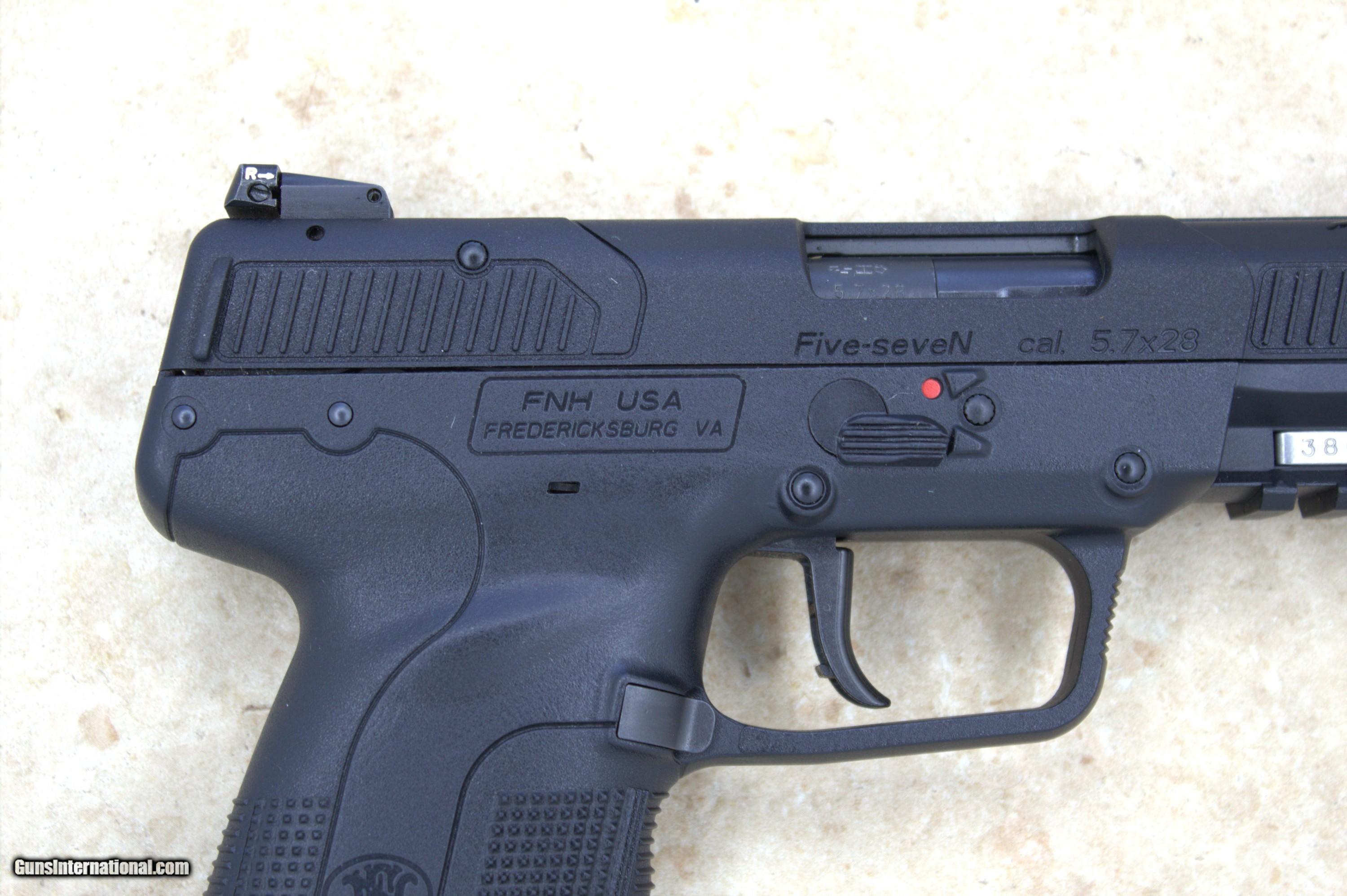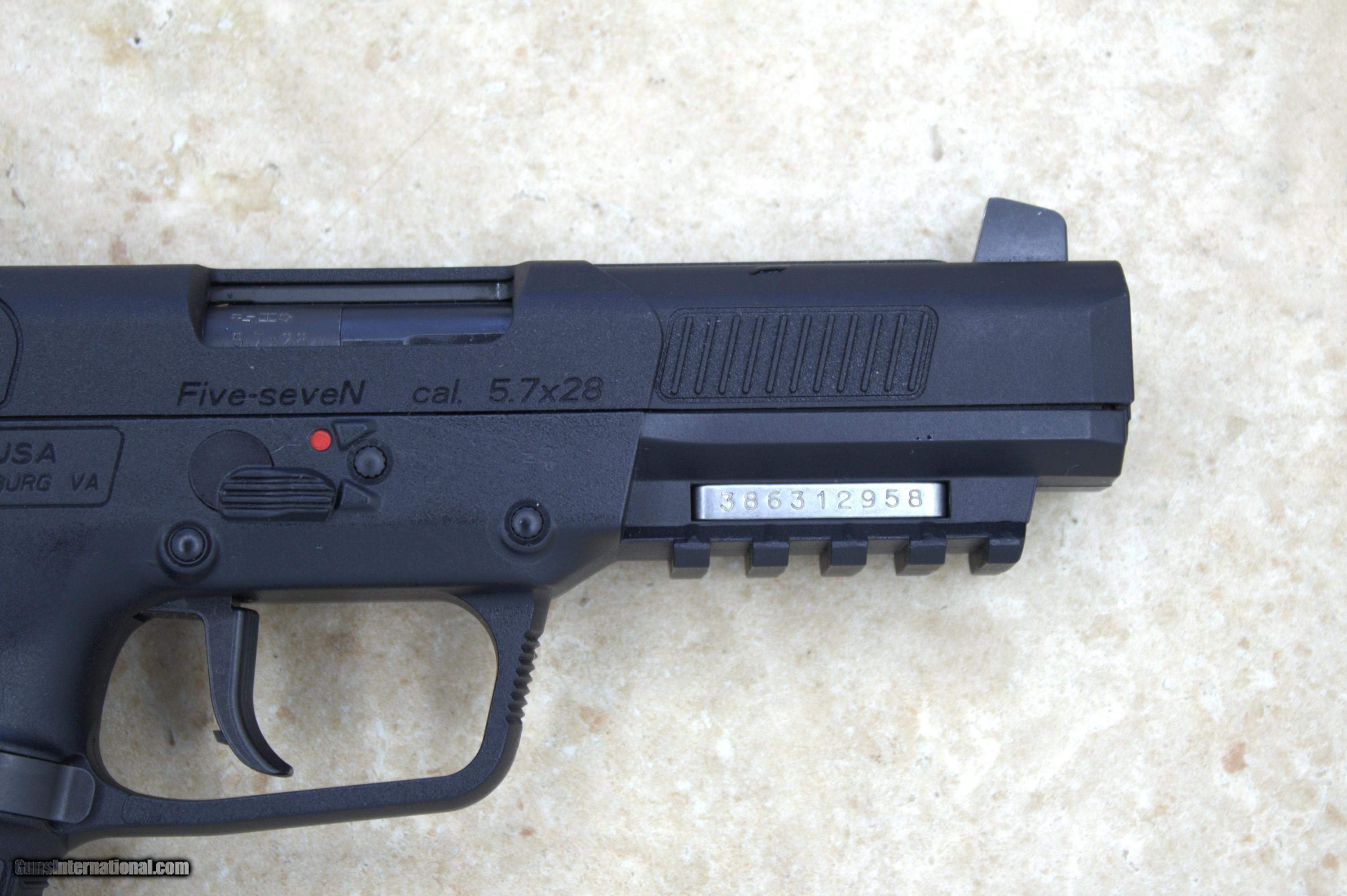 Description: Here we have a mint, FNH, Five-seveN that comes with a total of 3, 20 round magazines. This pistols exterior finish is "as new" with zero blemishes. The bore is bright with sharp rifling. It appears that this Five-seveN has spent most of it's life in a safe. If you're looking for a great pistol for target shooting and/or home defense, this one's for you!! PRICE: **SOLD** We are Antique & Modern Firearms in Lexington, KY, dealer of fine firearms since 1974. Phone : 859-276-1419 We Buy, Sell, and Trade Firearms & Knives. Have an Individual Firearm, Firearms Collection, or Firearms Estate to sell, let us know, and we can buy or consignment sell it for you. NOTE: No additional fee for a Credit Card payment. We offer 60 Day layaway with 33% down. SOLD Handgun Caliber: 5.7x28mm Manufacturer: FNH Model: Five-Seven Serial Number: 386312958 Barrel Length: 4.8 inches Condition: excellent Metal Condition: excellent Bore Condition: as new Action: SEMI |