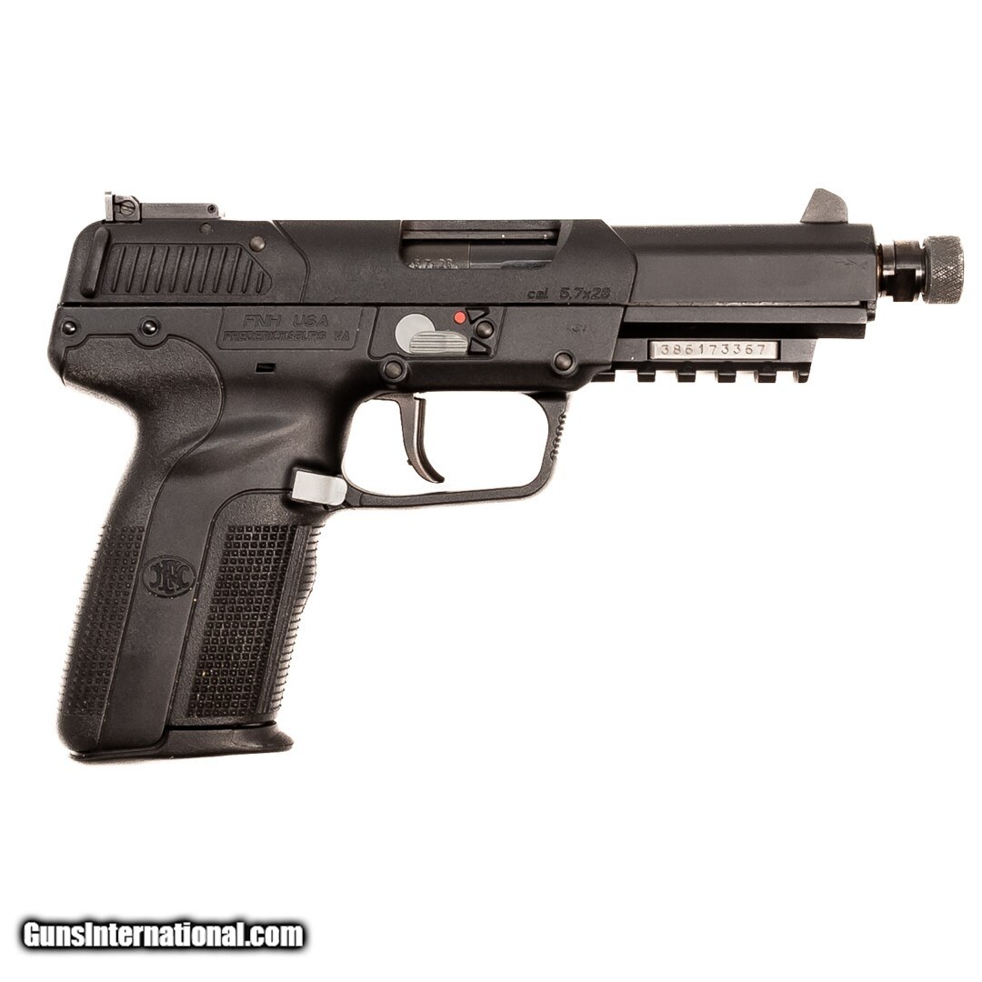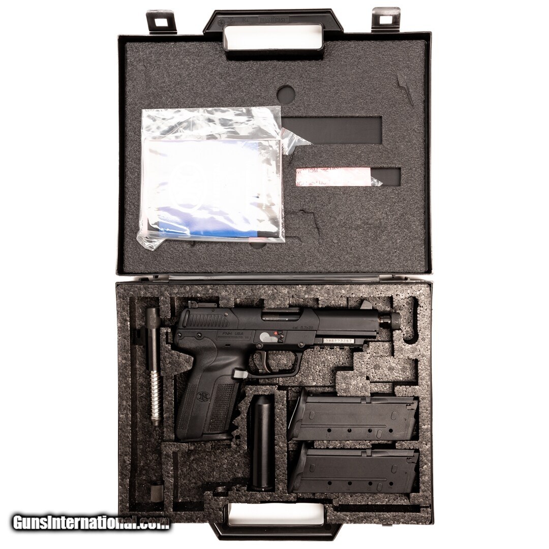 Description: Guns Listing ID: 896993 The FNH Five-seveN is a semi-auto handgun named for the caliber in which it is chambered — 5.7x28mm. Suitable for concealed carry and home defense, the delayed blowback action aids in reduced recoil. It offers predominately polymer construction, as well as a concealed hammer and special safety to prevent firing without a magazine. An integral rail makes for easy mounting of accessories. This model is equipped with a threaded barrel with protector (comes with tool). Purchase includes the original case, three 20-round magazines, the original barrel, and a cleaning kit. Get the best bang for your buck when you get a Certified Used Firearm . When you see the Certified Used stamp on any of our firearms, you can be confident that you’re getting exactly what you want – a gun only in very good to excellent condition and held to the highest quality standard. All Certified Used Guns come with a ‘no questions asked’ return policy . PLUS, ALL CERTIFIED USED GUNS SHIP FREE! SOLD Manufacturer: FN Model: Five-SeveN Caliber Info: 5.7X28MM Condition: Used - Certified Barrels: not specified |