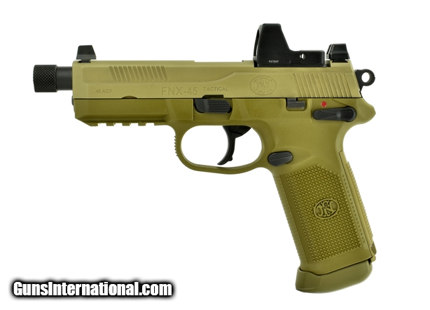 FN FNX-45 .45 ACP caliber pistol. Tactical model with FDE finish. Trijicon RMR, bag and magazine in excellent condition.