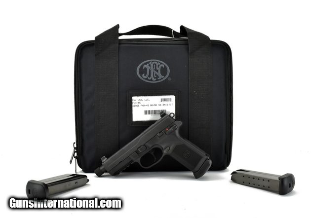 Description: FN FNX-45 Tactical .45ACP caliber pistol. Tactical model with black finish, raised night sights, and 3 15 round magazines in excellent condition with carry case.