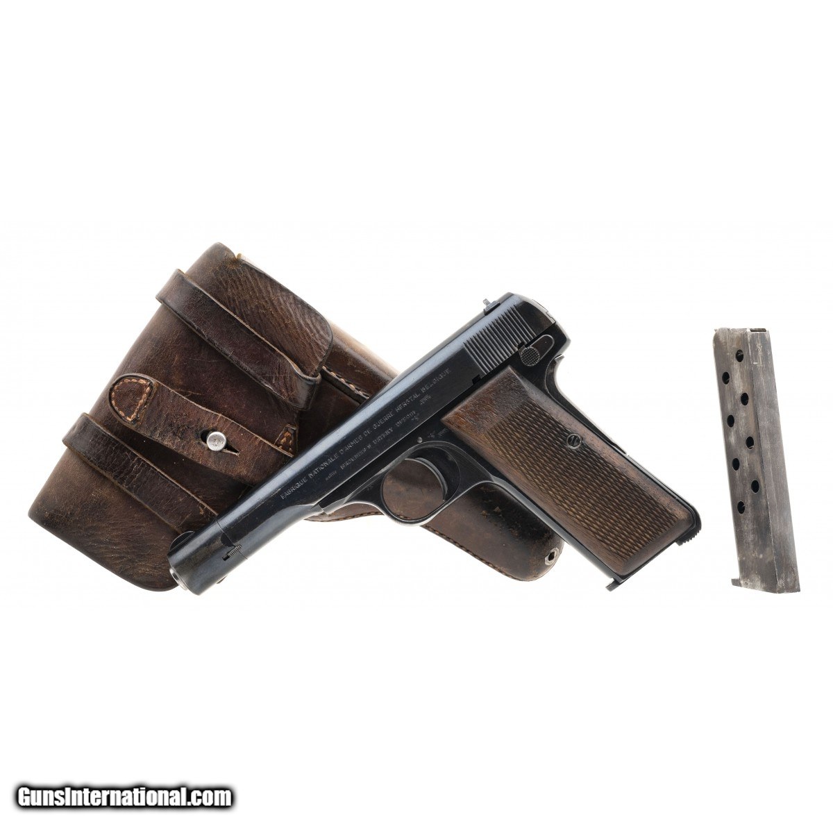 SN: 85000. Made in 1940. .32 ACP with a 4.5"" barrel. Bore is excellent. Luftwaffe WWII era Belgian made pistol with AaA140 Waffenamt acceptance markings and 90% factory blue finish. Has checkered wood grips. Overall very good condition. Comes with correct holster and extra magazine. c&r