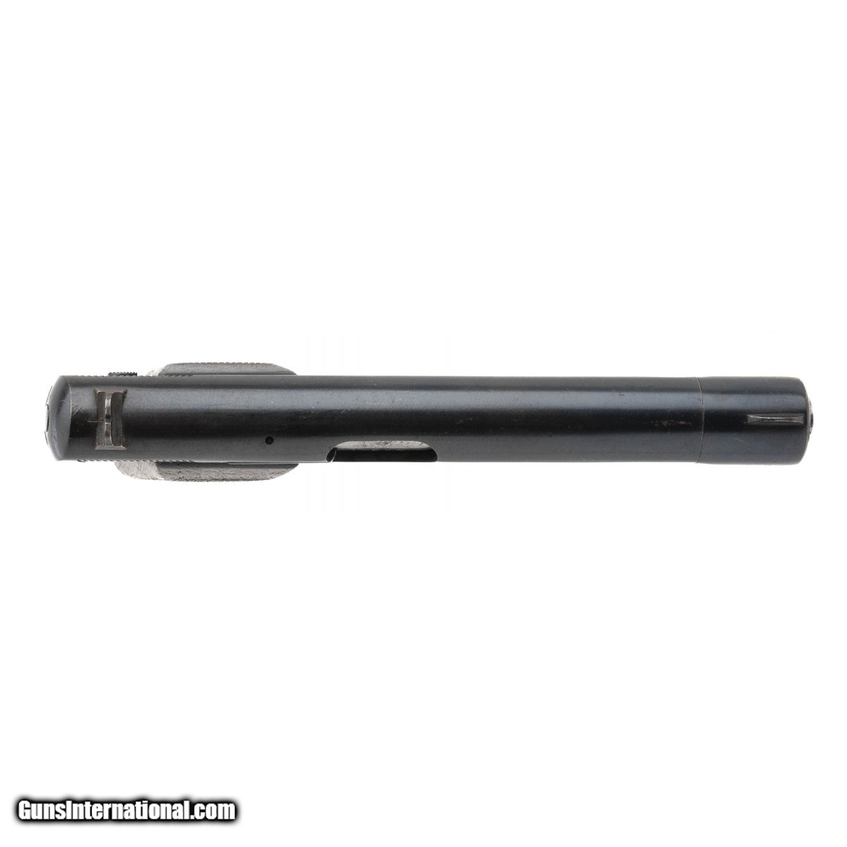 Description: "SN: 182090. WWII production .32 Auto caliber with a 4.5"" barrel. Bore is excellent. WWII German military pistol with waffen amts. Has about 90% original blue finish with some light speckling. Grips are very good with light wear. Overall very good condition. Consignment. SOLD |