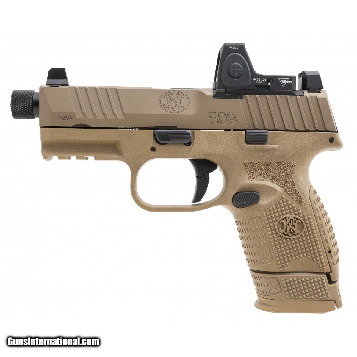 Description: " Compact tactical with 4.32"" threaded barrel in FDE finish and Trijicon RMR. Has suppressor height tritium sight and optic cut. Overall very good Condition. Comes with range bag, 1-12rd, 1-15rd and 1-24rd magazines. SOLD |